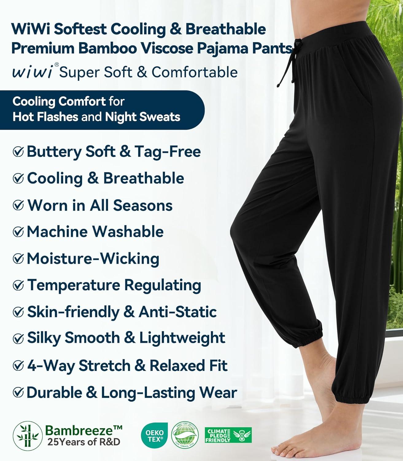 WiWi Pajama Pants for Women Lounge Super Soft Joggers Yoga Viscose from Bamboo Bottoms Cooling Pajamas Pant Sweatpants S-4X(A-black)