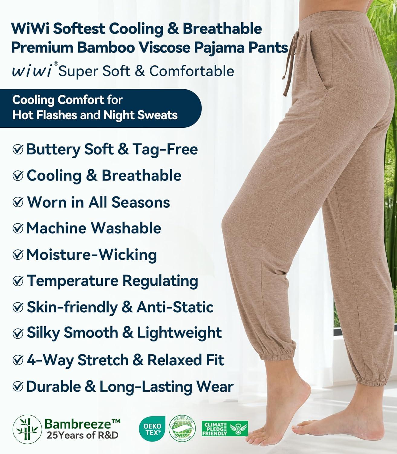 imageWiWi Pajama Pants for Women Lounge Super Soft Joggers Yoga Viscose from Bamboo Bottoms Cooling Pajamas Pant Sweatpants S4XAcamel