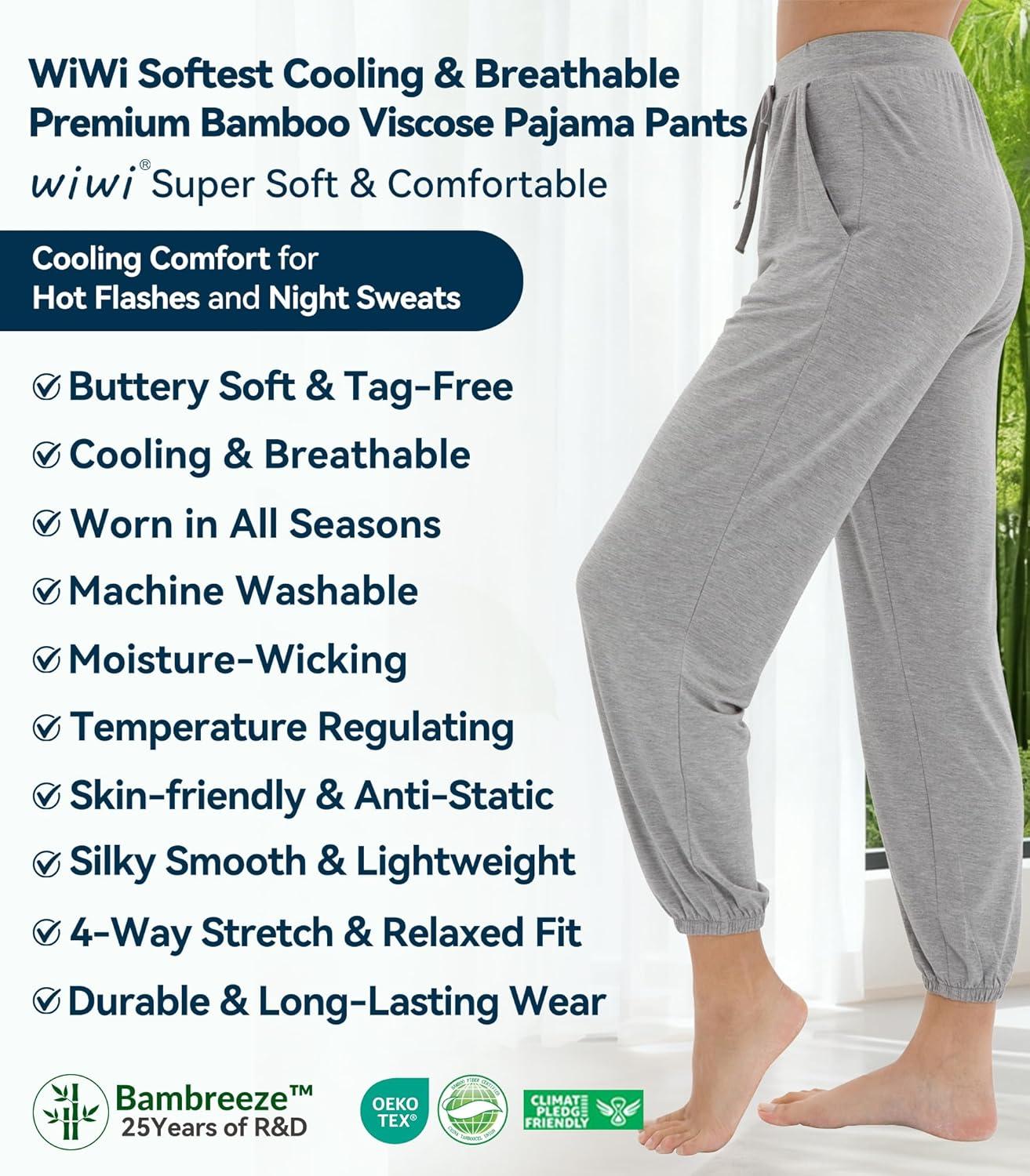 WiWi Pajama Pants for Women Lounge Super Soft Joggers Yoga Viscose from Bamboo Bottoms Cooling Pajamas Pant Sweatpants S-4X(A-ash Grey)
