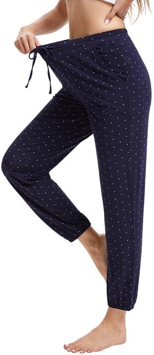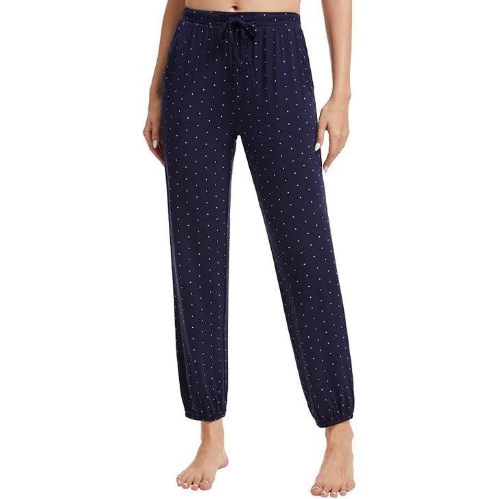 WiWi Pajama Pants for Women Lounge Super Soft Joggers Yoga Viscose from Bamboo Bottoms Cooling Pajamas Pant Sweatpants S-4X(A-navy/White Dots)