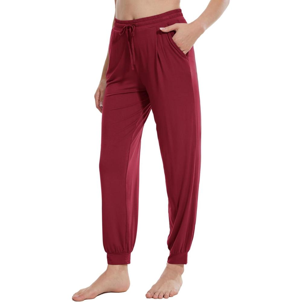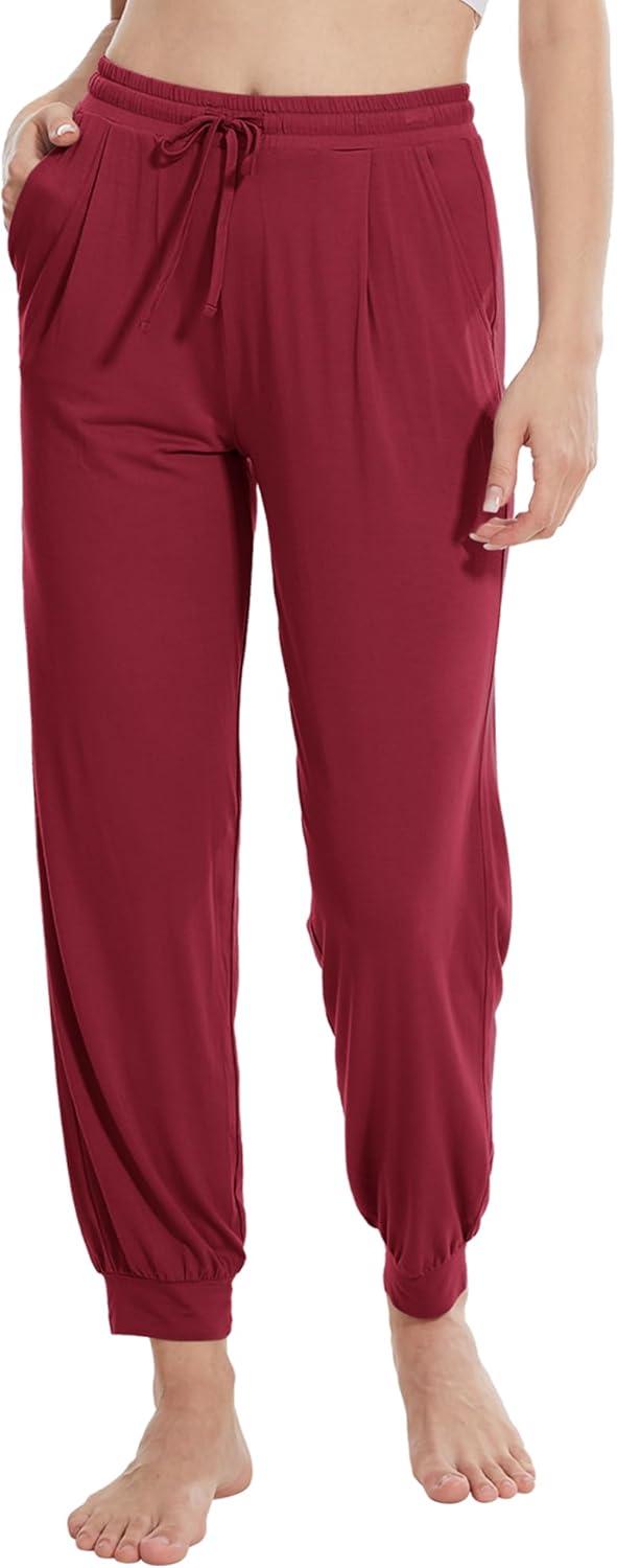 WiWi Pajama Pants for Women Lounge Super Soft Joggers Yoga Viscose from Bamboo Bottoms Cooling Pajamas Pant Sweatpants S-4X(B-wine)
