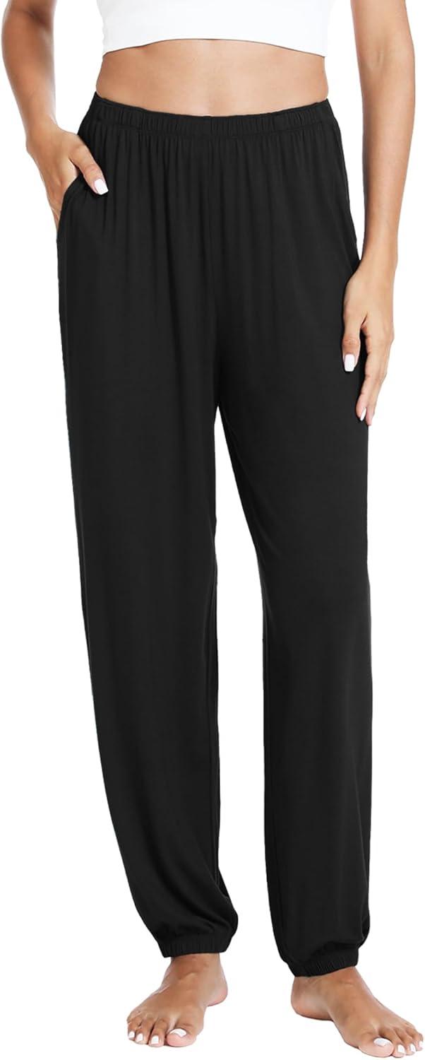 WiWi Pajama Pants for Women Lounge Super Soft Joggers Yoga Viscose from Bamboo Bottoms Cooling Pajamas Pant Sweatpants S-4X(B-black)