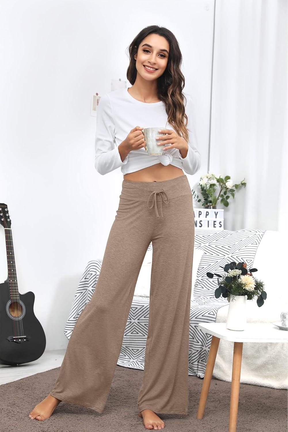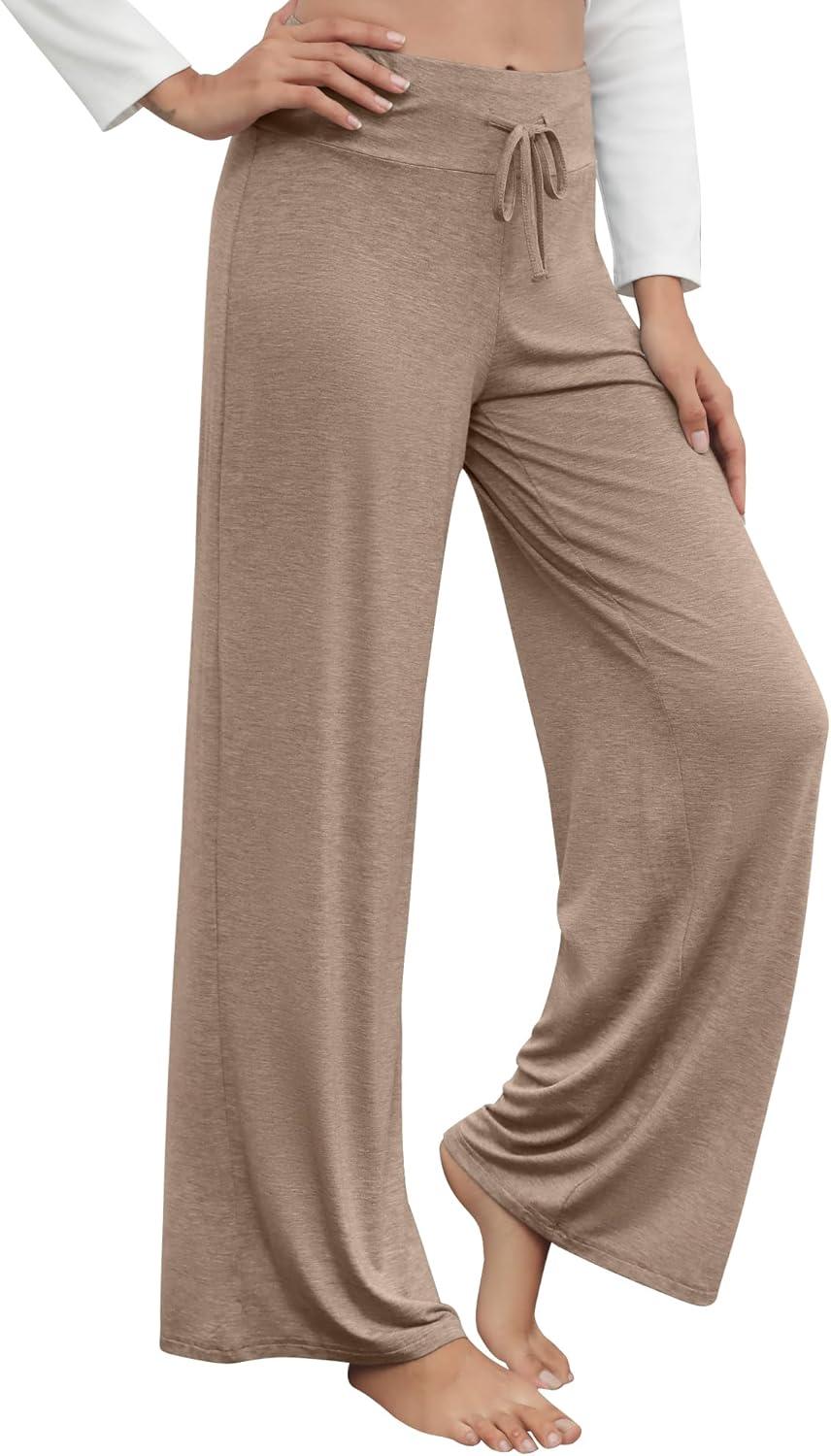 WiWi Pajama Pants for Women Plus Size Pajamas Bottoms Wide Leg Lounge Soft Pj Sweatpants-Viscose Made from Bamboo S-4X(A-camel)