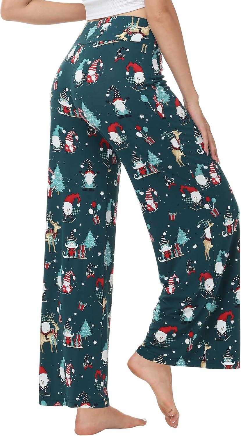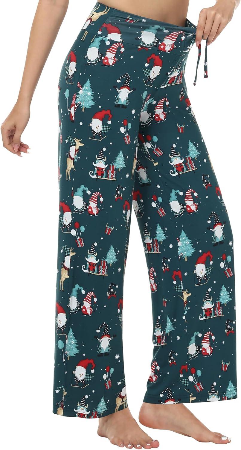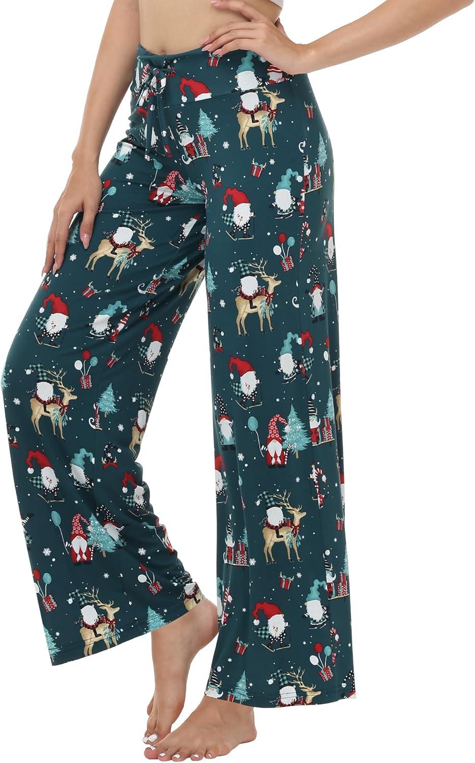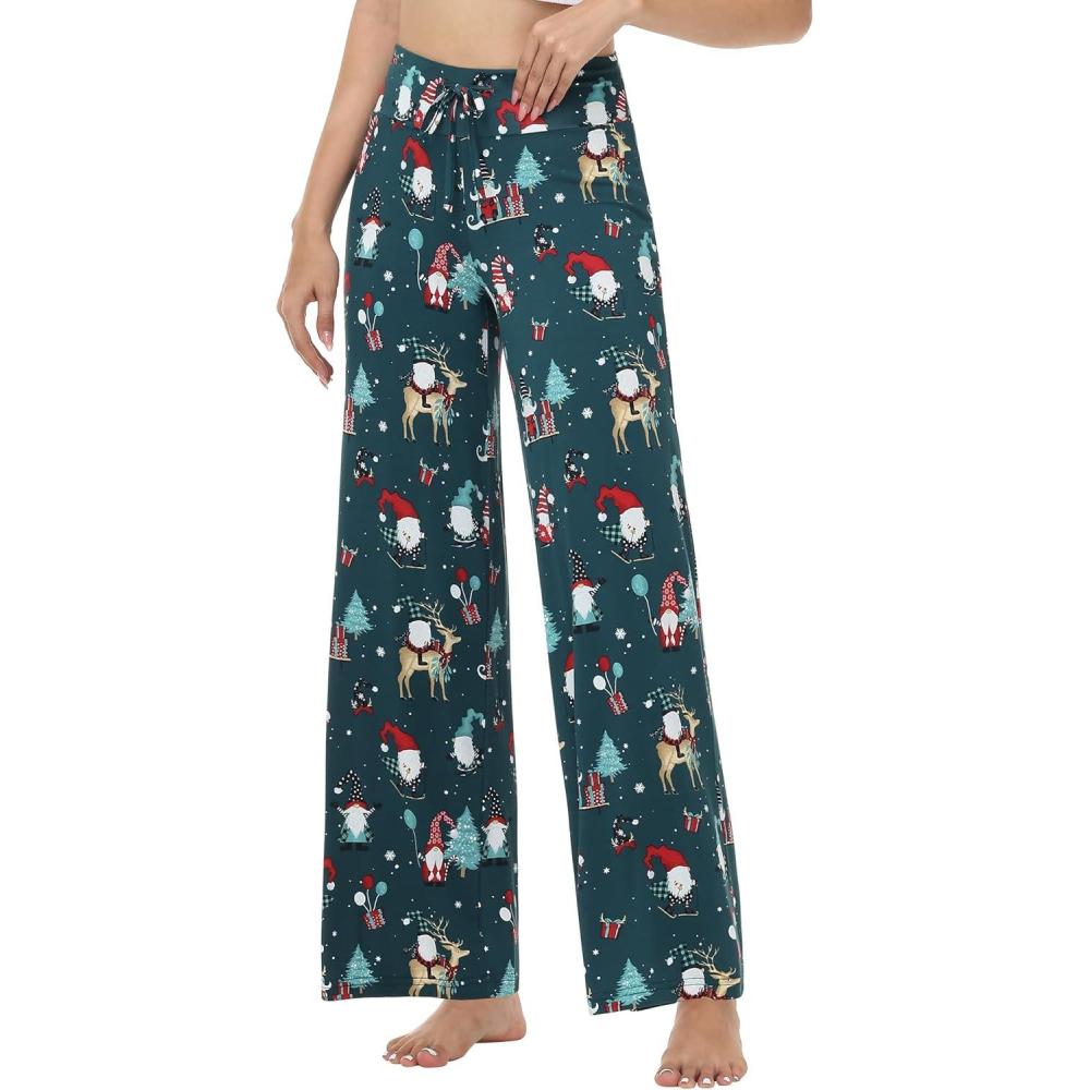 WiWi Pajama Pants for Women Plus Size Pajamas Bottoms Wide Leg Lounge Soft Pj Sweatpants-Viscose Made from Bamboo S-4X(A-christmas Elk on Green)
