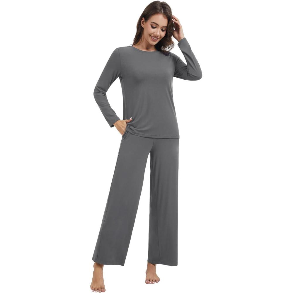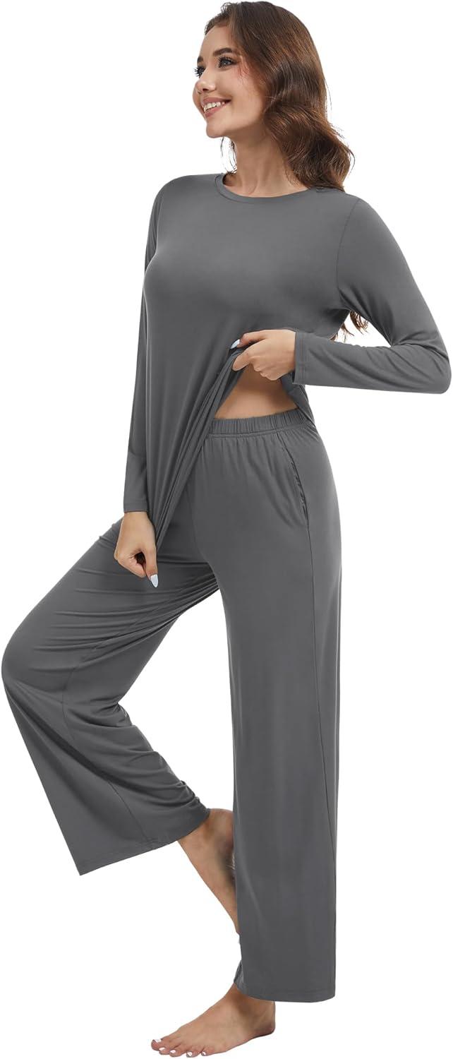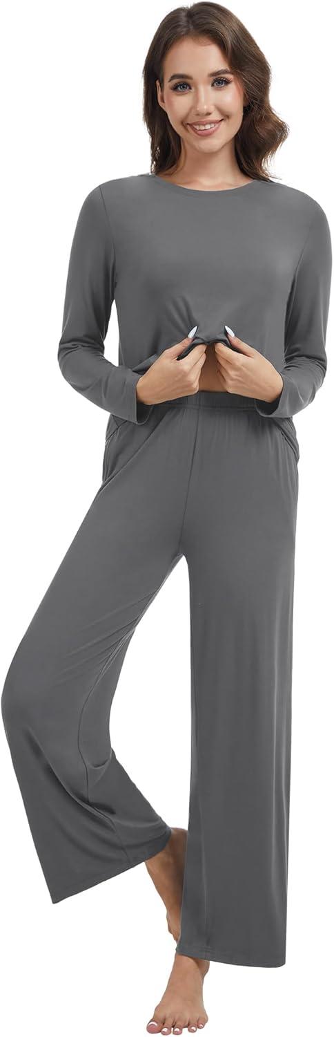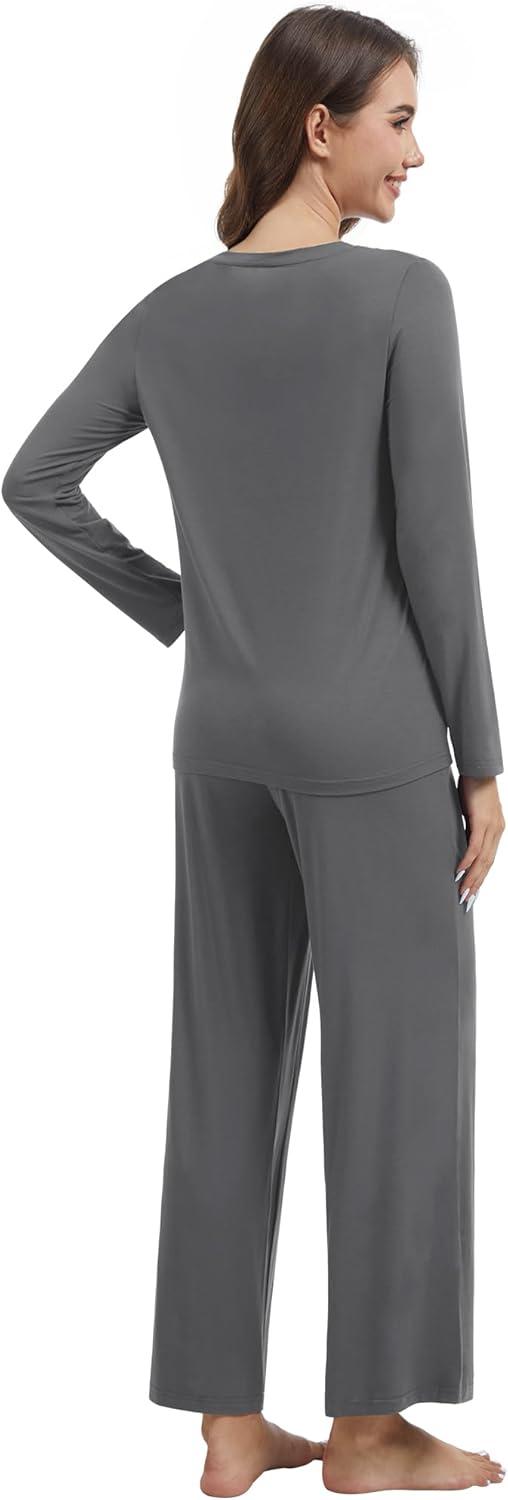 WiWi Pajama Set for Women Viscose from Bamboo Long Sleeve Top with Pants Soft Sleepwear 2 Piece Pjs Sets Loungewear S-XXL(Charcoal)