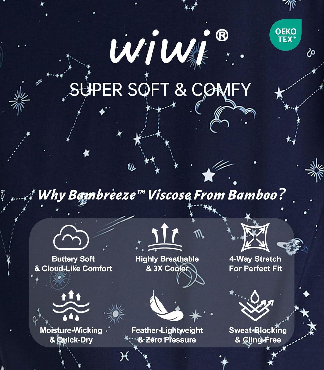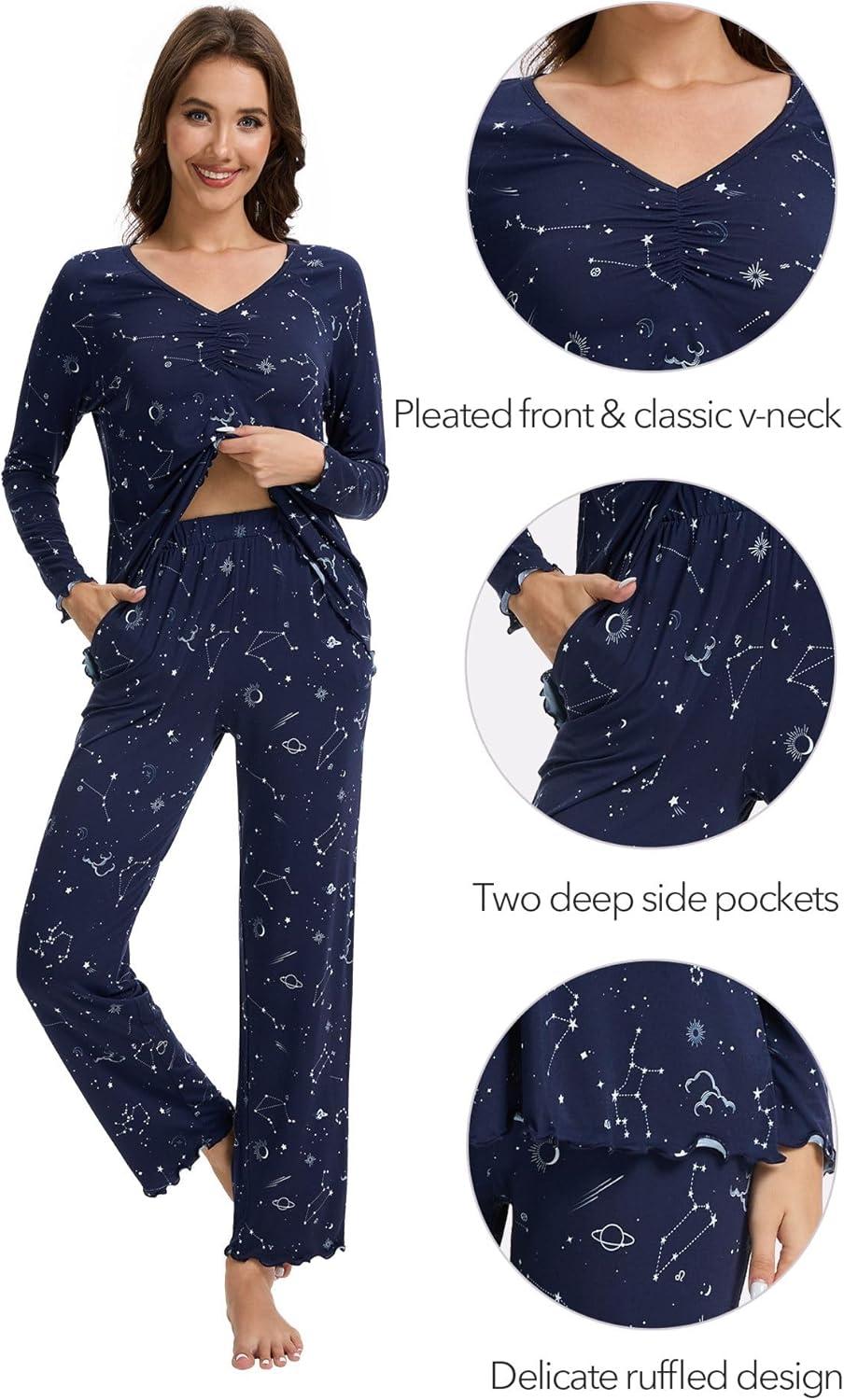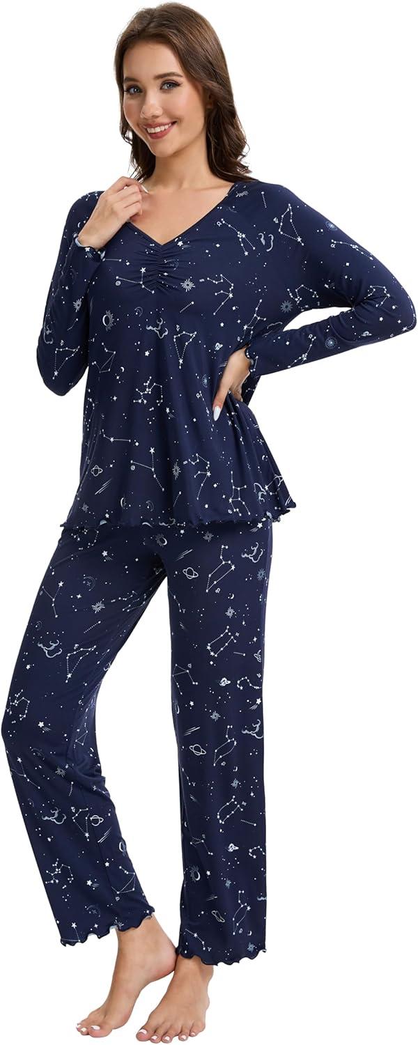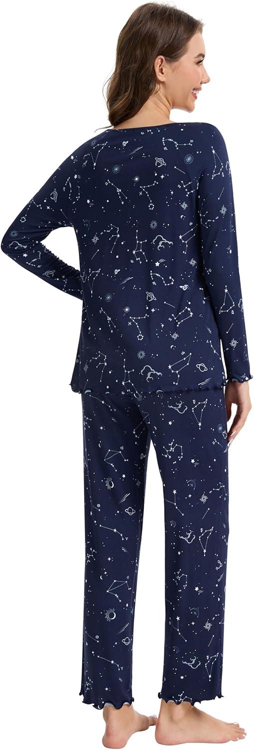WiWi Pajama Sets for Women Soft Comfy Pjs Loungewear Lightweight Sleepwear with Pants Viscose from Bamboo Pajamas Set S-XXL(Blue Constellation)