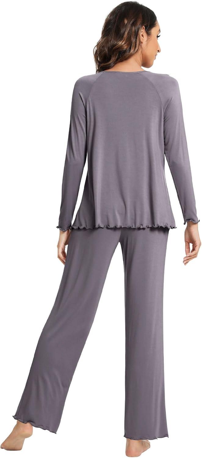 WiWi Pajama Sets for Women Soft Comfy Pjs Loungewear Lightweight Sleepwear with Pants Viscose from Bamboo Pajamas Set S-XXL(Dark Grey)
