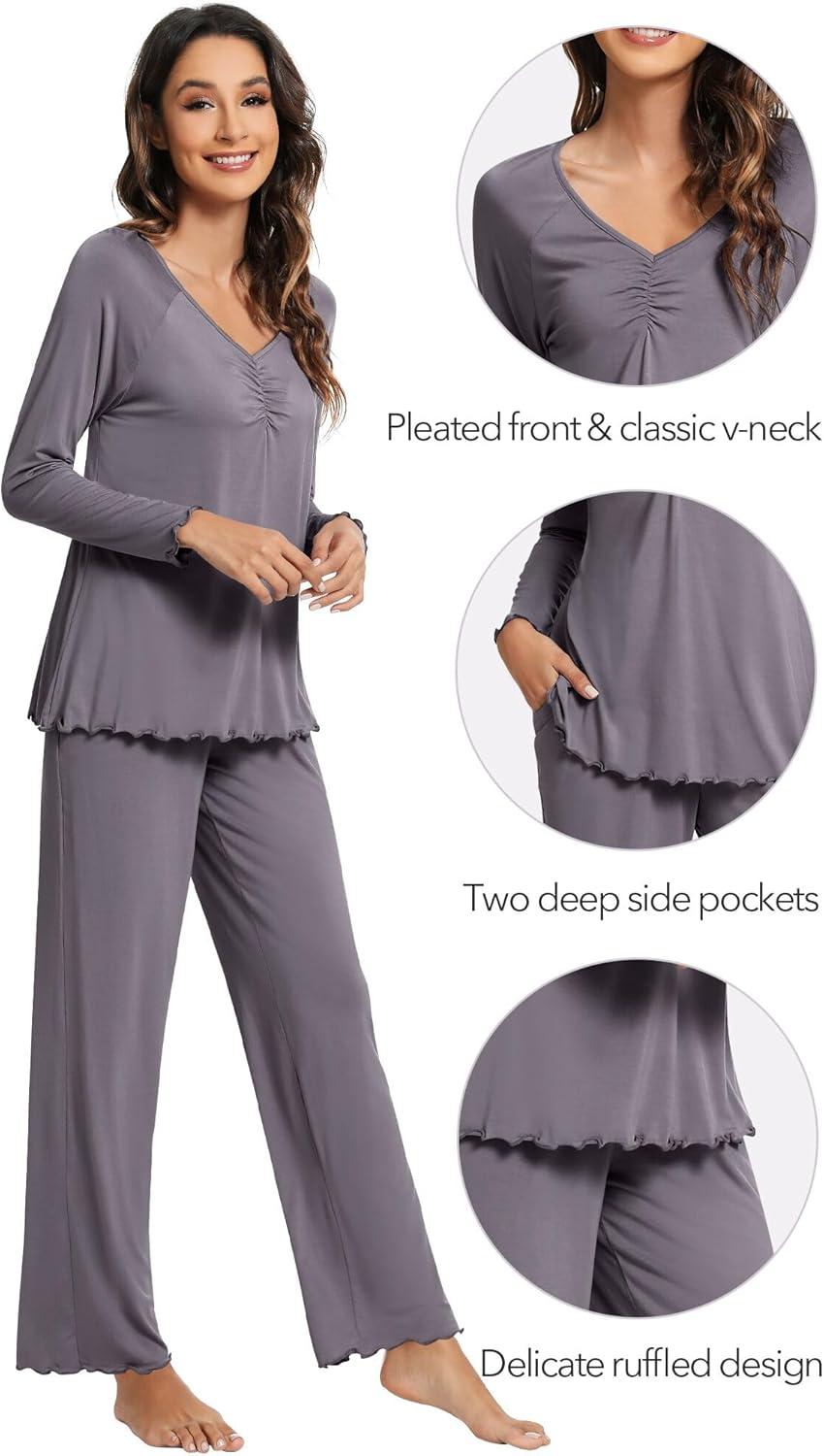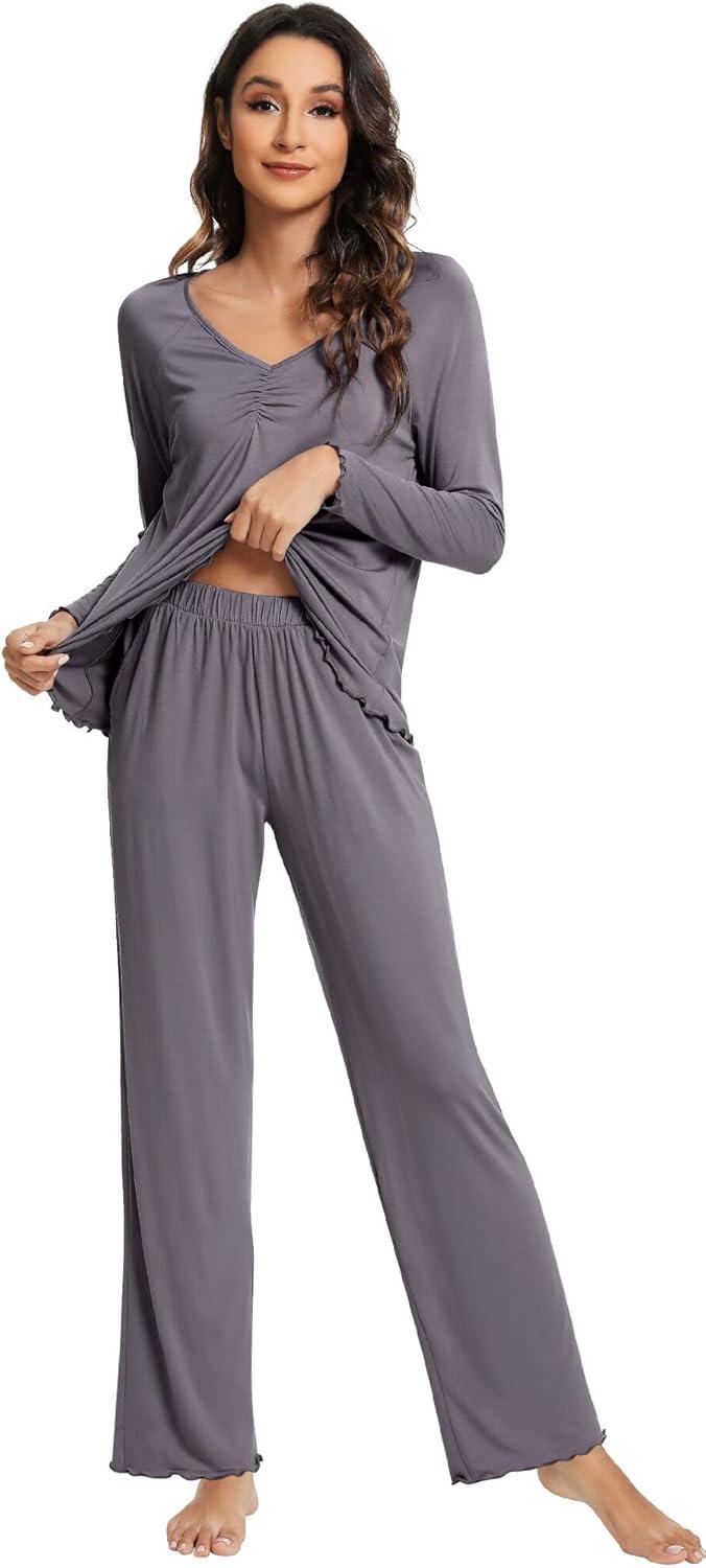 WiWi Pajama Sets for Women Soft Comfy Pjs Loungewear Lightweight Sleepwear with Pants Viscose from Bamboo Pajamas Set S-XXL(Dark Heather Grey)
