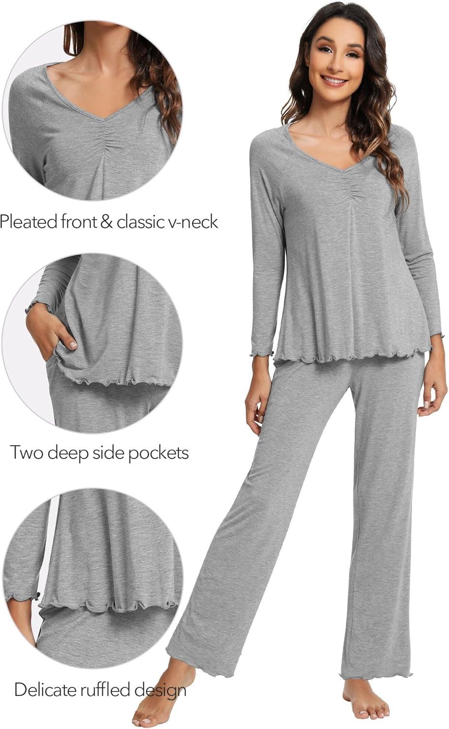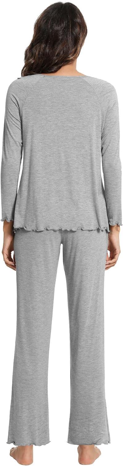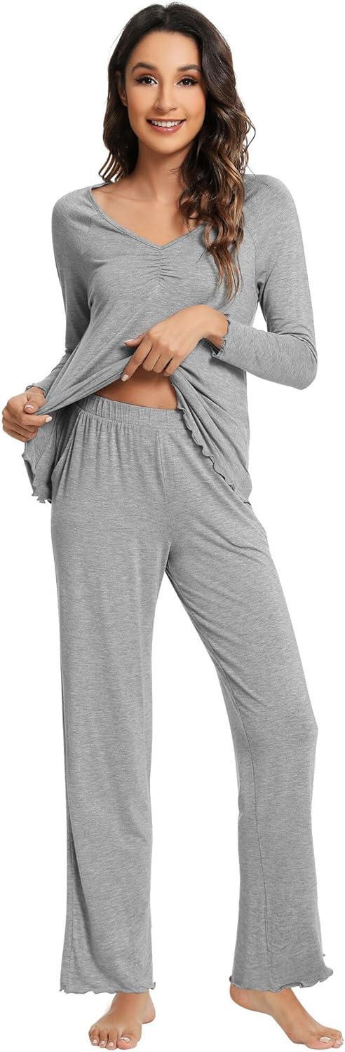 WiWi Pajama Sets for Women Soft Comfy Pjs Loungewear Lightweight Sleepwear with Pants Viscose from Bamboo Pajamas Set S-XXL(Heather Grey)