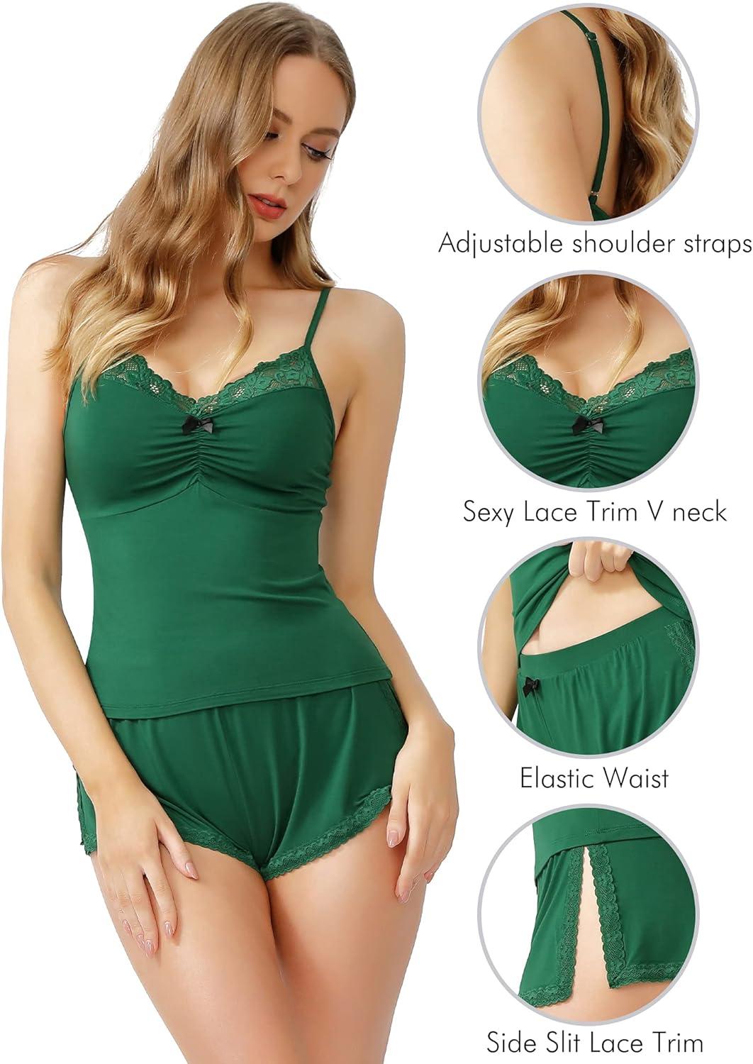 imageWiWi Pajamas for Women Soft Sleeveless Top with Shorts Pajama Sets 2 PieceViscooes from Bamnoo S4XBdark Green