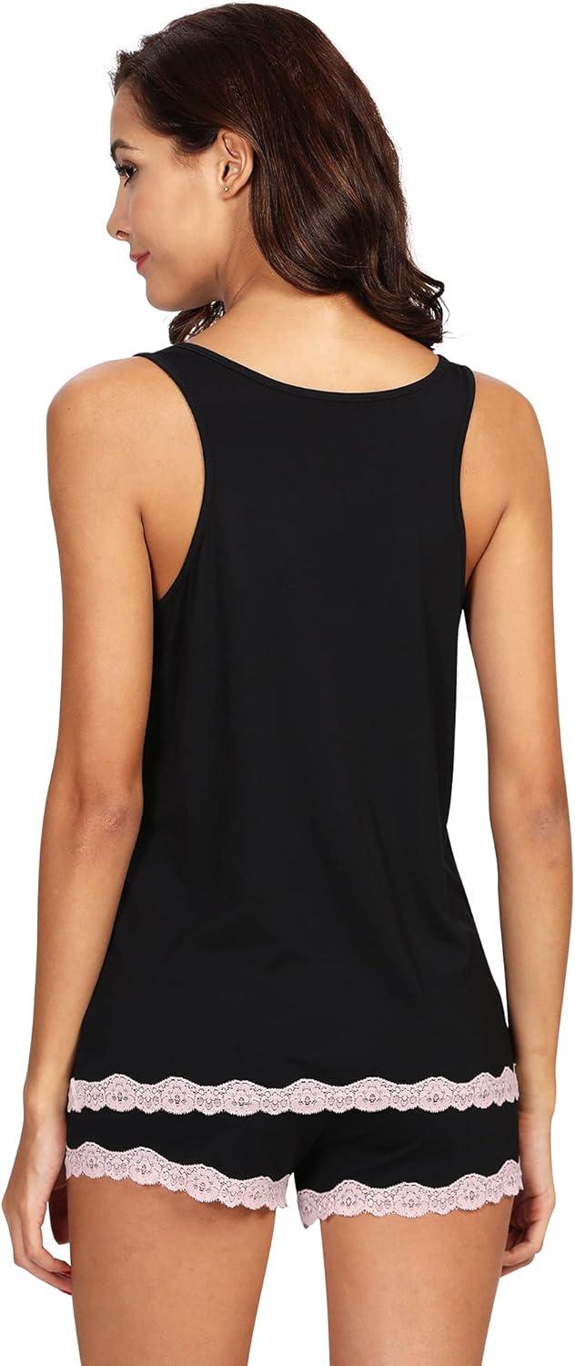 WiWi Pajamas for Women Soft Sleeveless Top with Shorts Pajama Sets Bamboo Viscose 2 Piece Sleepwear Set S-4X(A-black/Pink)