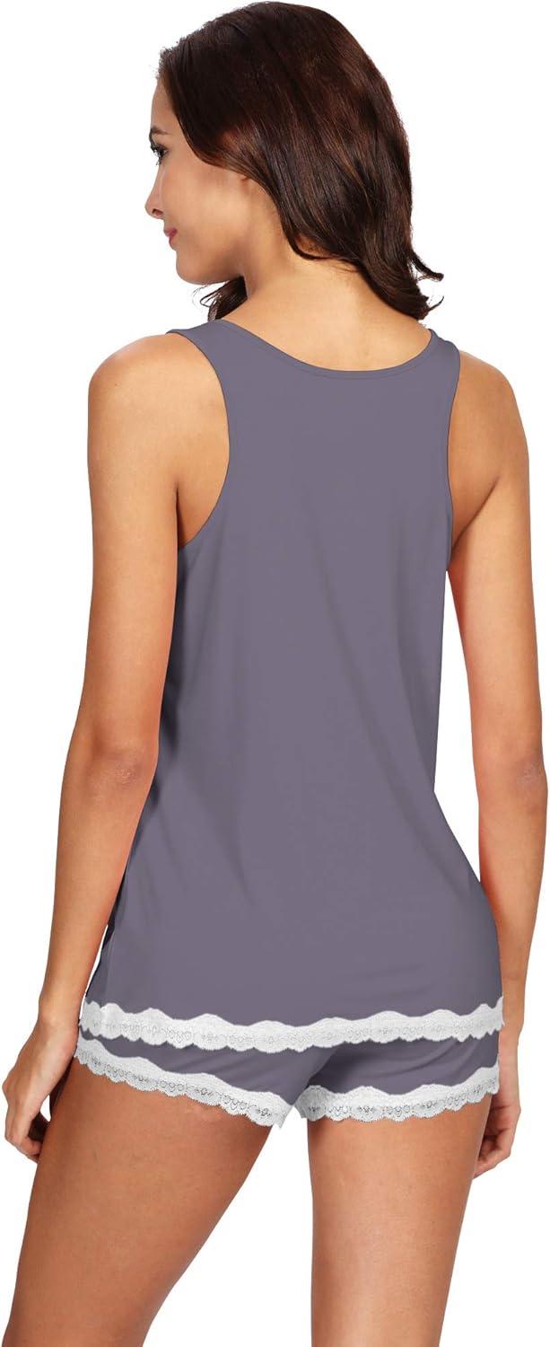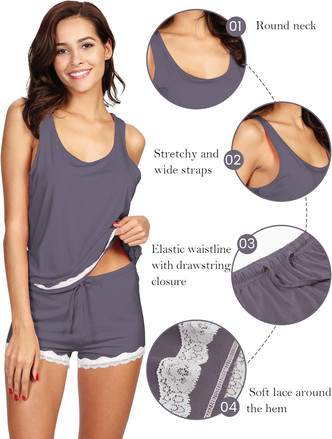 WiWi Pajamas for Women Soft Sleeveless Top with Shorts Pajama Sets Bamboo Viscose 2 Piece Sleepwear Set S-4X(A-dark Grey)