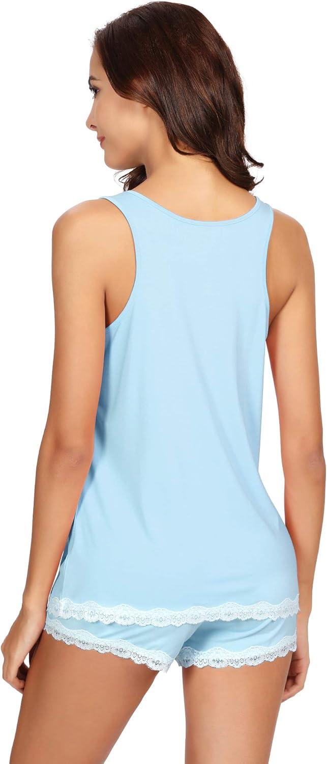 WiWi Pajamas for Women Soft Sleeveless Top with Shorts Pajama Sets Bamboo Viscose 2 Piece Sleepwear Set S-4X(A-pale Blue)
