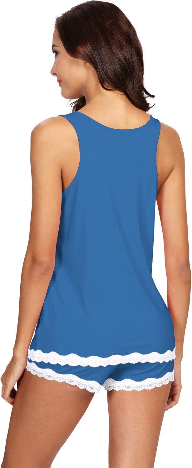 WiWi Pajamas for Women Soft Sleeveless Top with Shorts Pajama Sets Bamboo Viscose 2 Piece Sleepwear Set S-4X(A-prussian Blue)