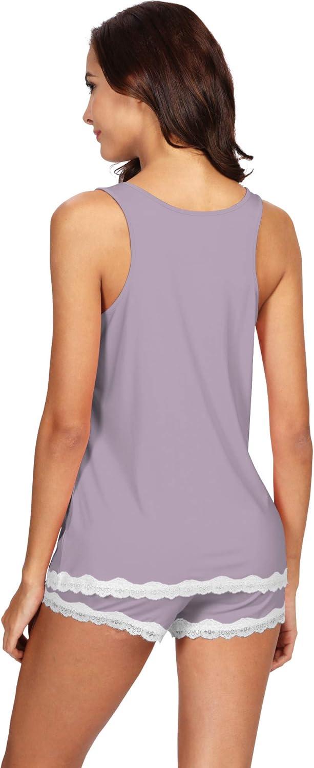 WiWi Pajamas for Women Soft Sleeveless Top with Shorts Pajama Sets Bamboo Viscose 2 Piece Sleepwear Set S-4X(A-violet)