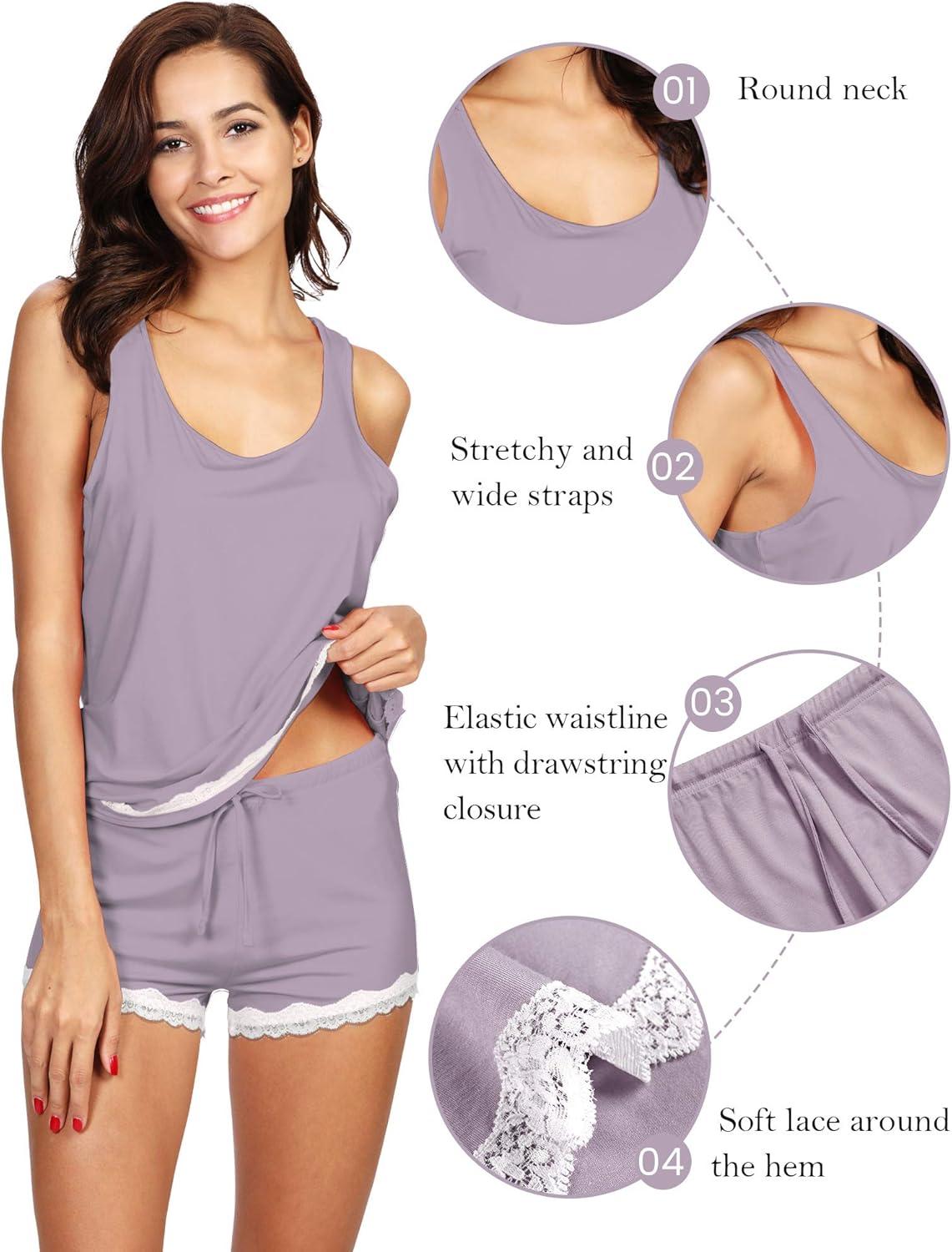 imageWiWi Pajamas for Women Soft Sleeveless Top with Shorts Pajama Sets Bamboo Viscose 2 Piece Sleepwear Set S4XAwine