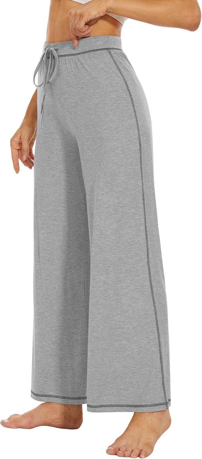 WiWi Pajamas Pants for Women Wide Leg Long Bottoms Bamboo Viscose Casual Loose Sweatpants High Waist Joggers S-XXL(A-heather Grey)