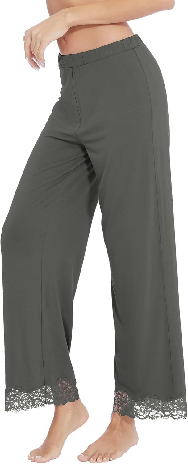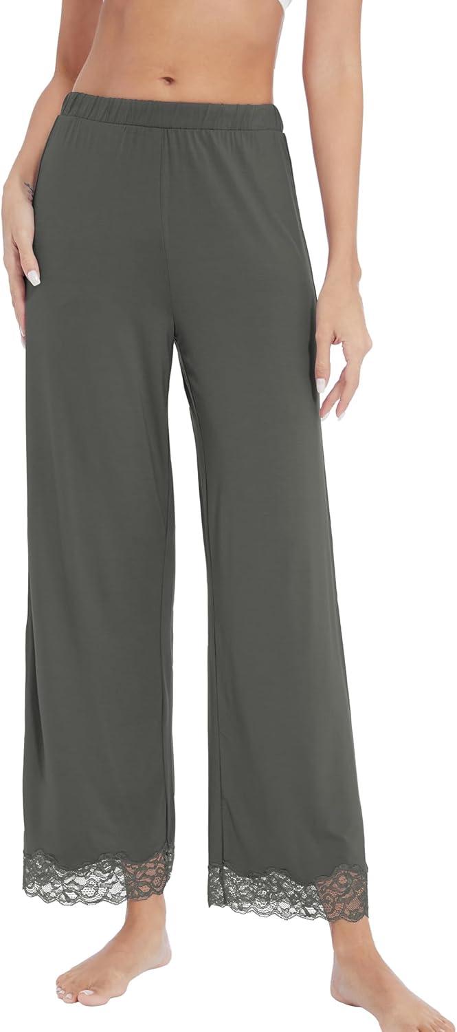 WiWi Pajamas Pants for Women Wide Leg Long Bottoms Bamboo Viscose Casual Loose Sweatpants High Waist Joggers S-XXL(D-charcoal Heather)