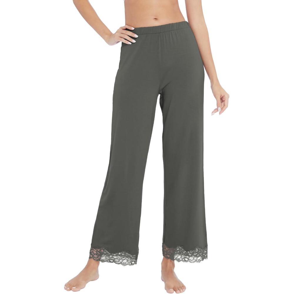 imageWiWi Pajamas Pants for Women Wide Leg Long Bottoms Bamboo Viscose Casual Loose Sweatpants High Waist Joggers SXXLBiron Grey