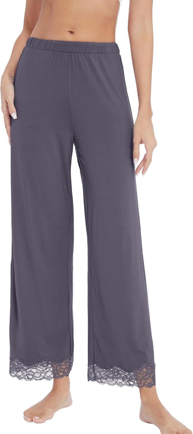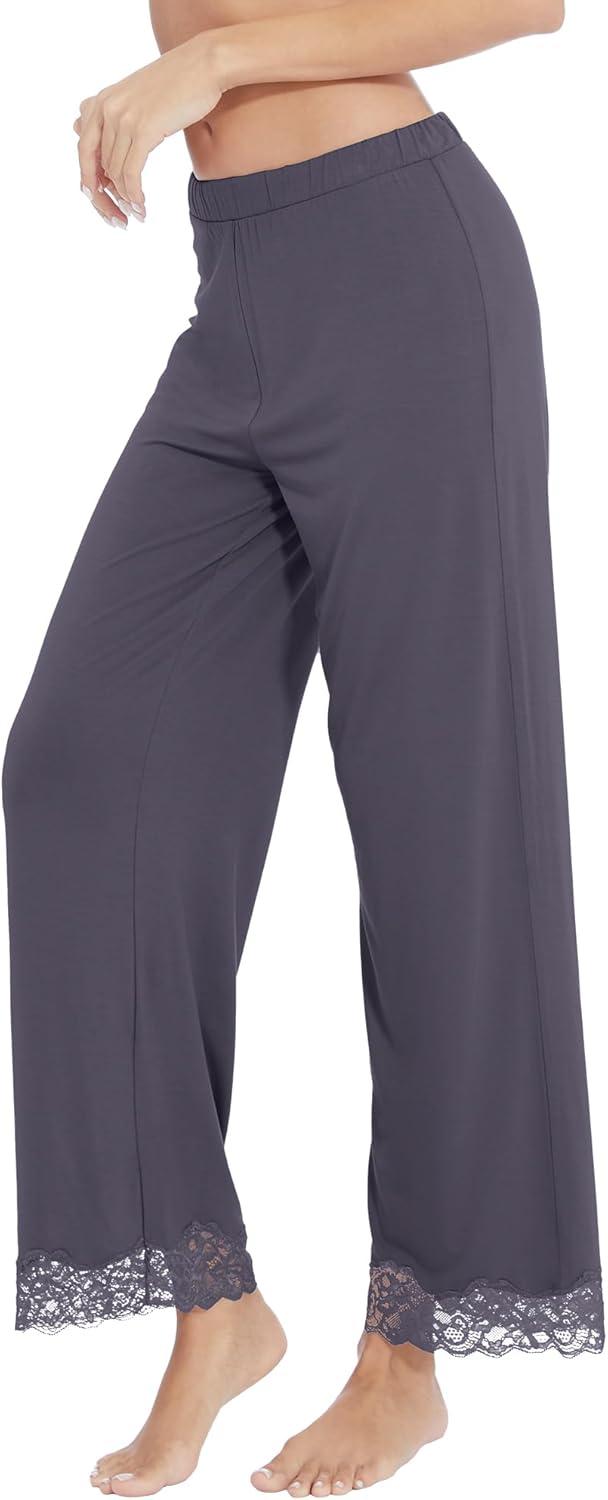 WiWi Pajamas Pants for Women Wide Leg Long Bottoms Bamboo Viscose Casual Loose Sweatpants High Waist Joggers S-XXL(B-heather Grey)
