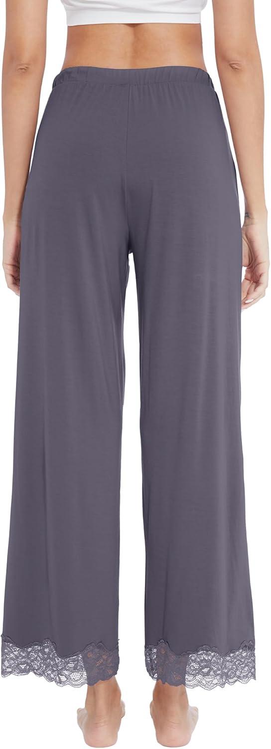 WiWi Pajamas Pants for Women Wide Leg Long Bottoms Bamboo Viscose Casual Loose Sweatpants High Waist Joggers S-XXL(B-purplish Grey)