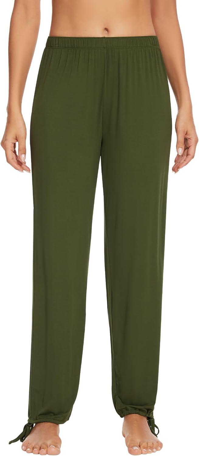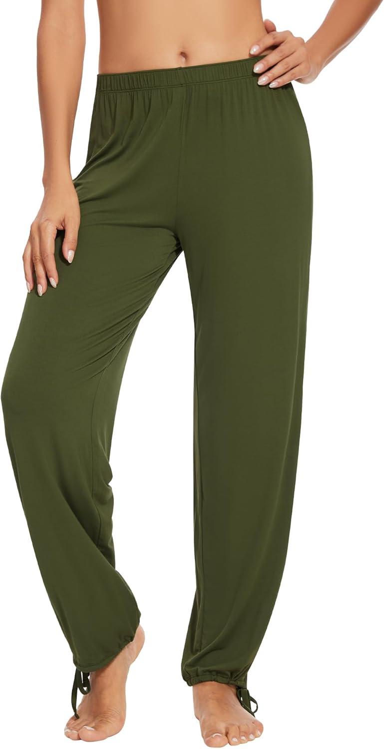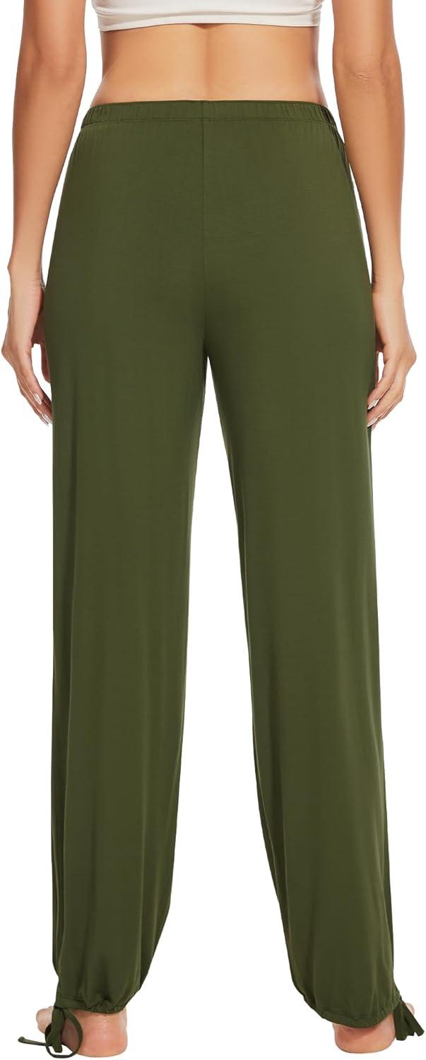 WiWi Pajamas Pants for Women Wide Leg Long Bottoms Bamboo Viscose Casual Loose Sweatpants High Waist Joggers S-XXL(D-army Green)