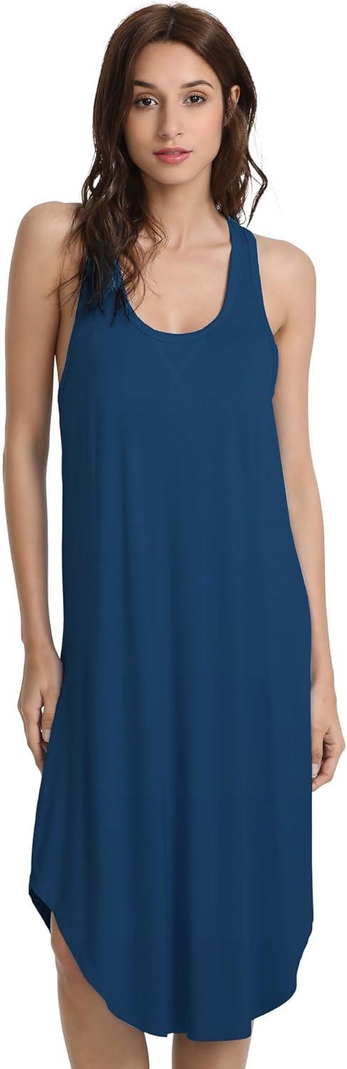 WiWi Soft Bamboo Viscose Nightgowns for Women Sleeveless Racerback Nightgown Plus Size Pajamas Sleepshirts S-4X(A-ink Blue)
