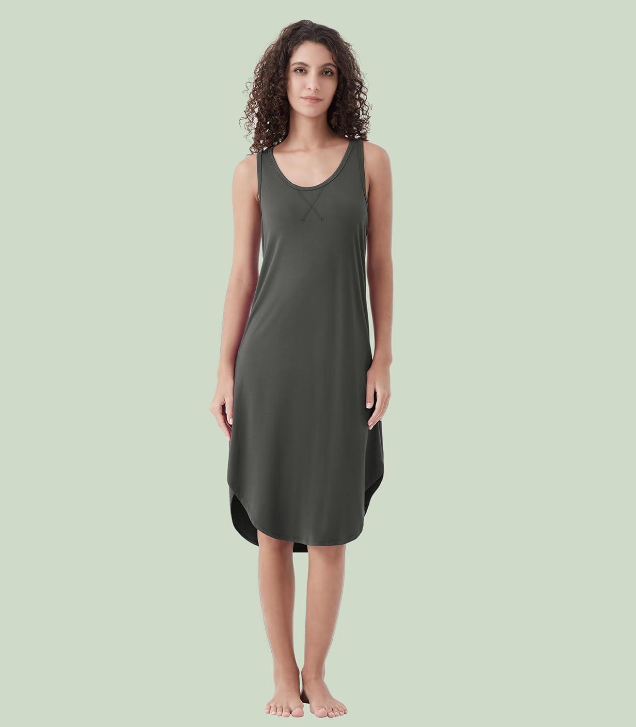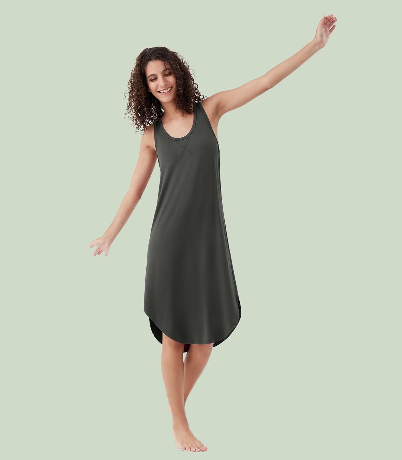 WiWi Soft Bamboo Viscose Nightgowns for Women Sleeveless Racerback Nightgown Plus Size Pajamas Sleepshirts S-4X(A-iron Grey)