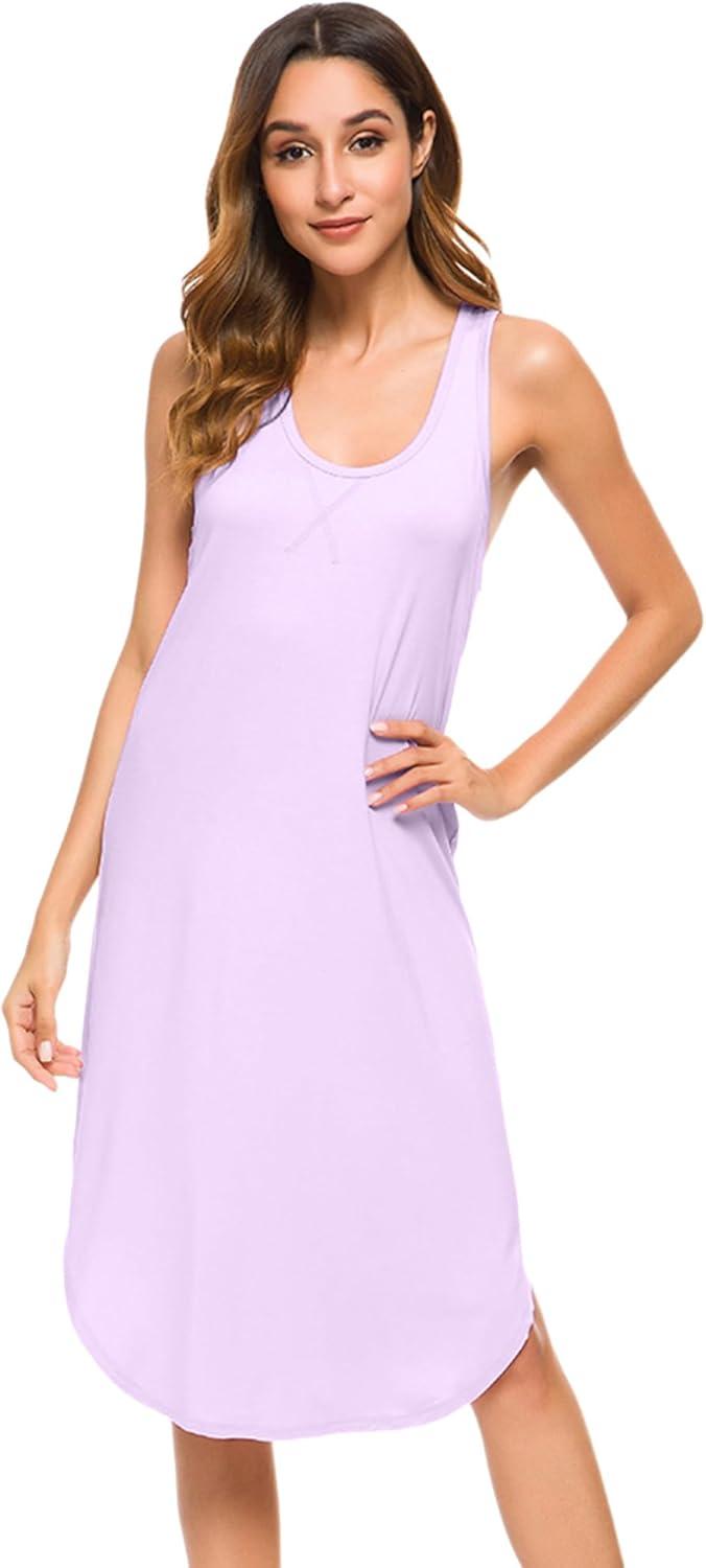WiWi Soft Bamboo Viscose Nightgowns for Women Sleeveless Racerback Nightgown Plus Size Pajamas Sleepshirts S-4X(A-light Purple)