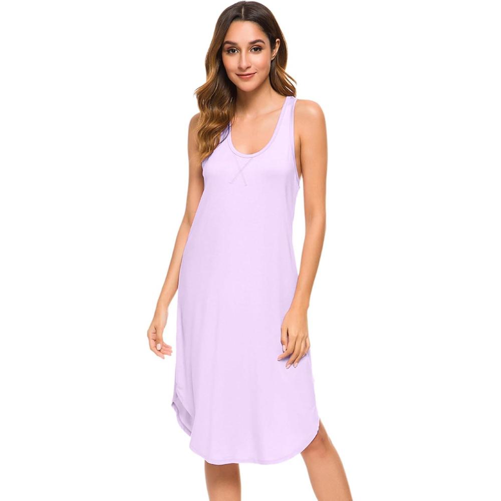 imageWiWi Soft Bamboo Viscose Nightgowns for Women Sleeveless Racerback Nightgown Plus Size Pajamas Sleepshirts S4XAlight Purple