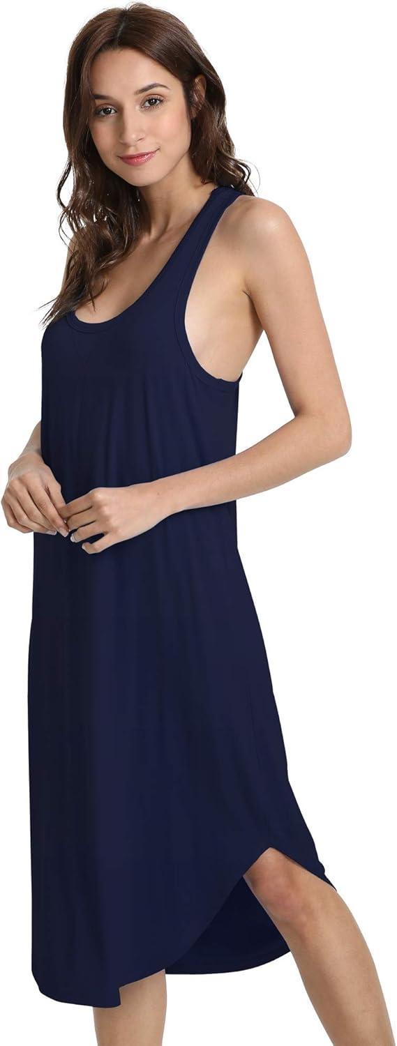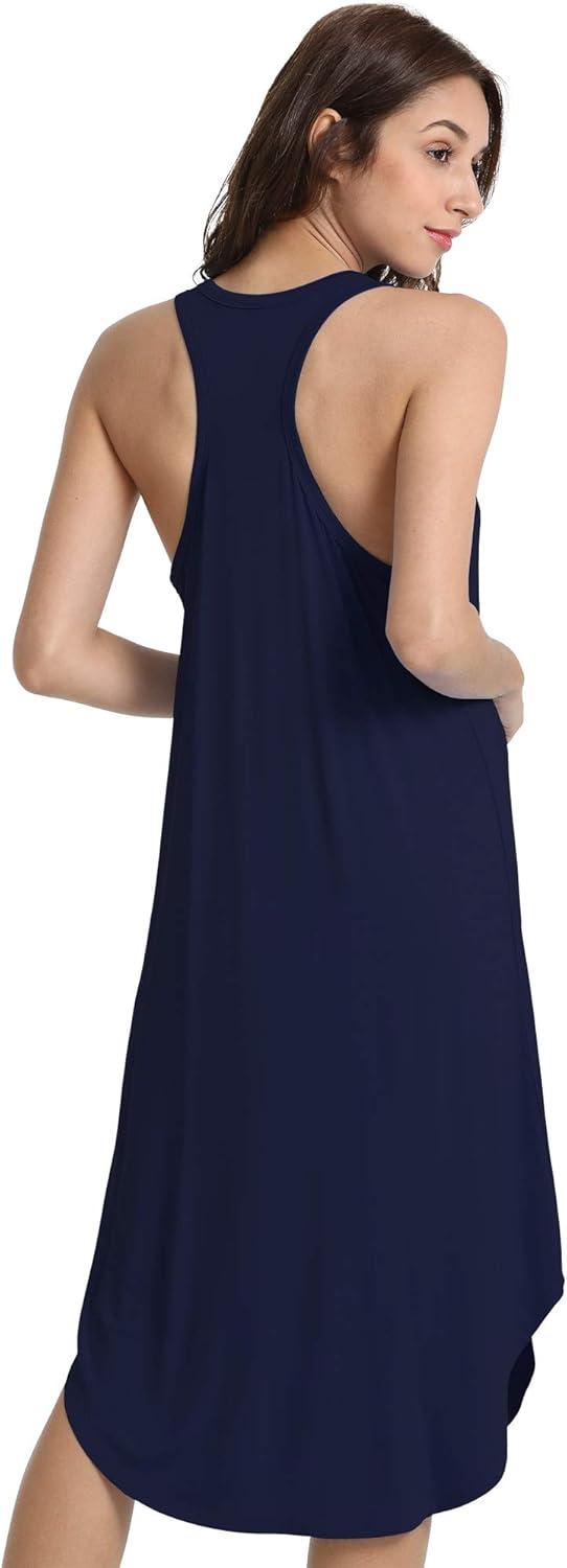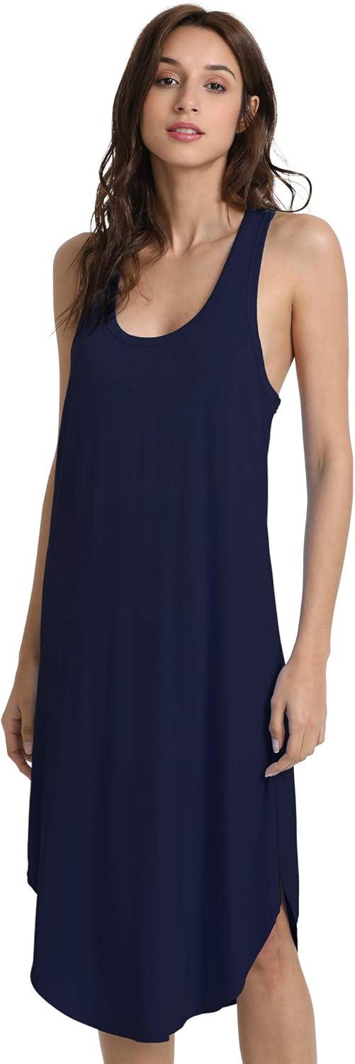 WiWi Soft Bamboo Viscose Nightgowns for Women Sleeveless Racerback Nightgown Plus Size Pajamas Sleepshirts S-4X(A-navy)