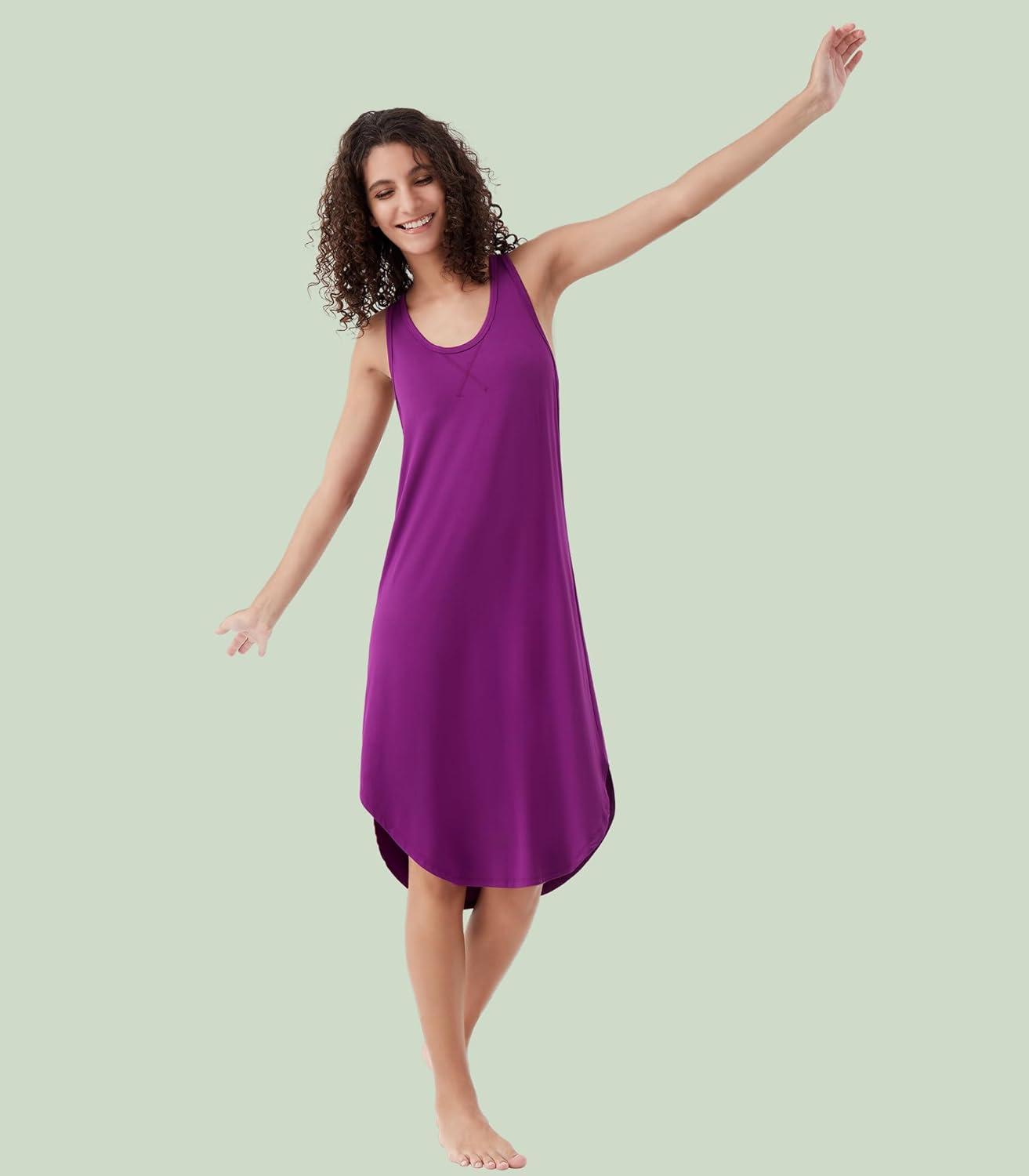 imageWiWi Soft Bamboo Viscose Nightgowns for Women Sleeveless Racerback Nightgown Plus Size Pajamas Sleepshirts S4XApurple