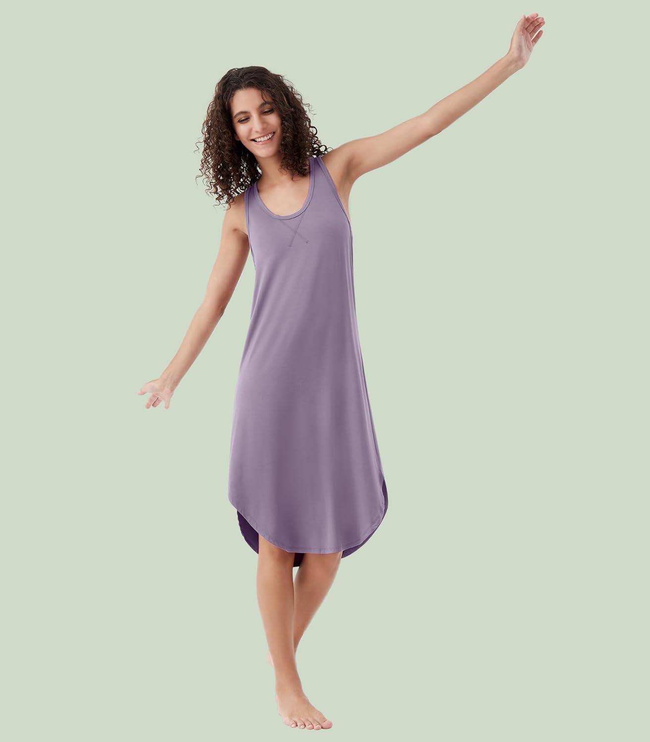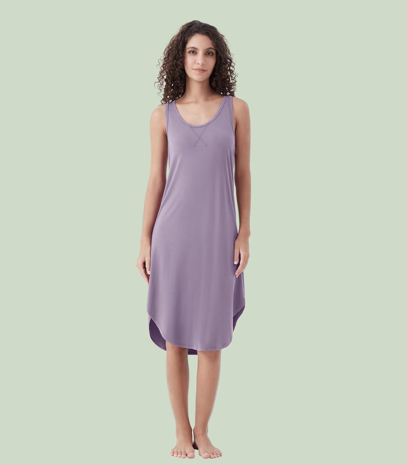 imageWiWi Soft Bamboo Viscose Nightgowns for Women Sleeveless Racerback Nightgown Plus Size Pajamas Sleepshirts S4XApurple