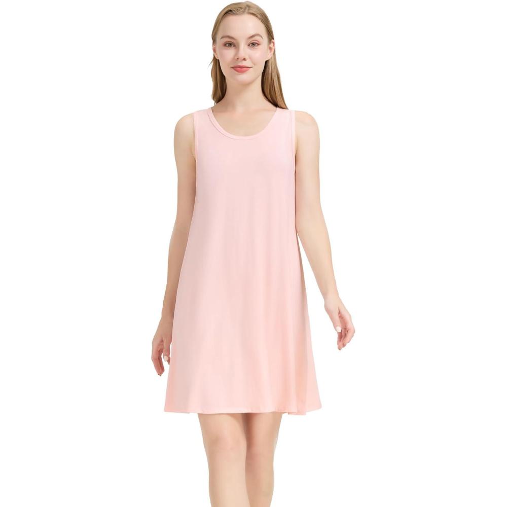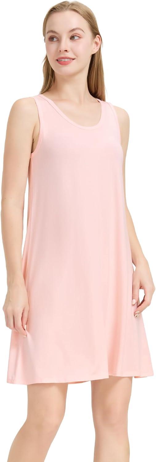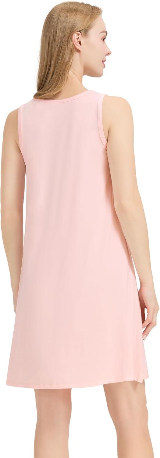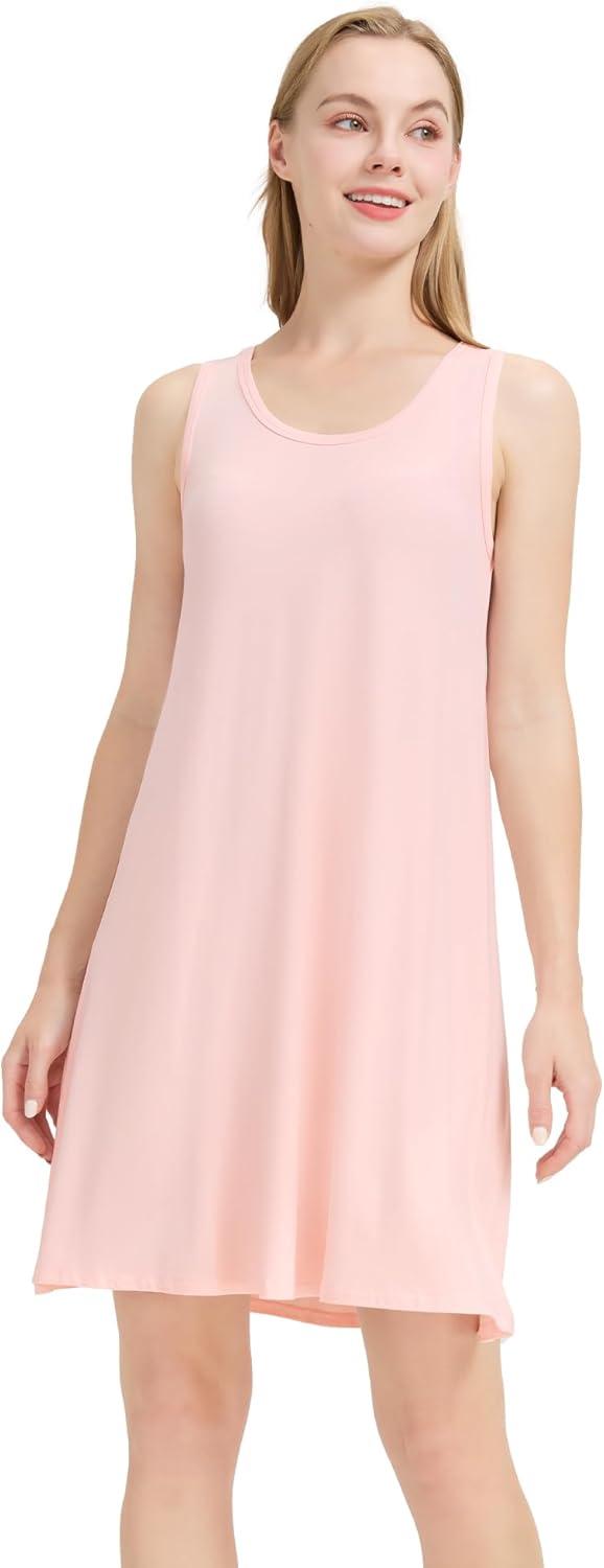WiWi Soft Bamboo Viscose Nightgowns for Women Sleeveless Racerback Nightgown Plus Size Pajamas Sleepshirts S-4X(C-cream Pink)