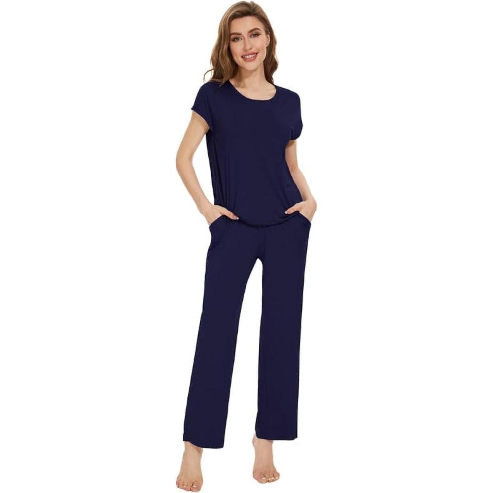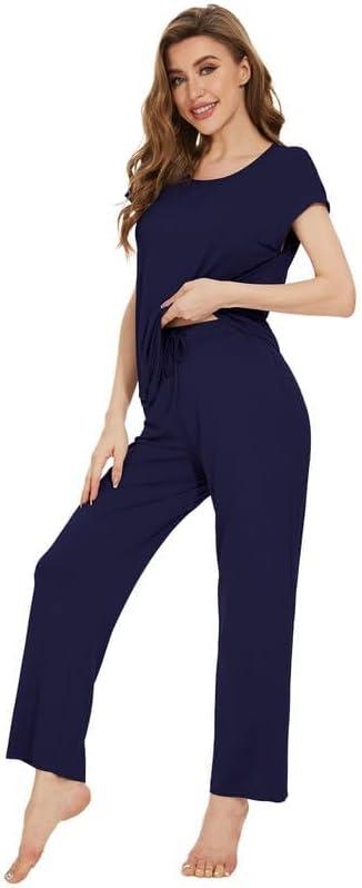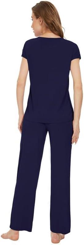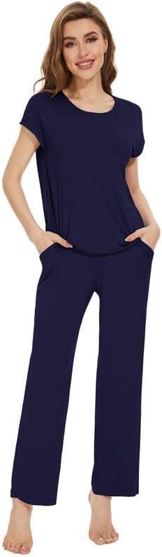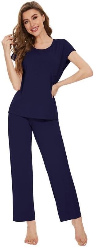 WiWi Soft Pajama Set for Women Short Sleeve Viscose from Bamboo Sleepwear Lightweight Loose Pajamas Pjs Sets S-XXL(A-navy)