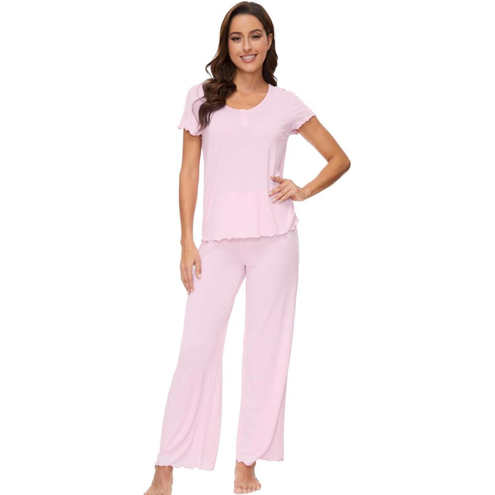 WiWi Soft Pajama Set for Women Short Sleeve Viscose from Bamboo Sleepwear Lightweight Loose Pajamas Pjs Sets S-XXL(C-pink)