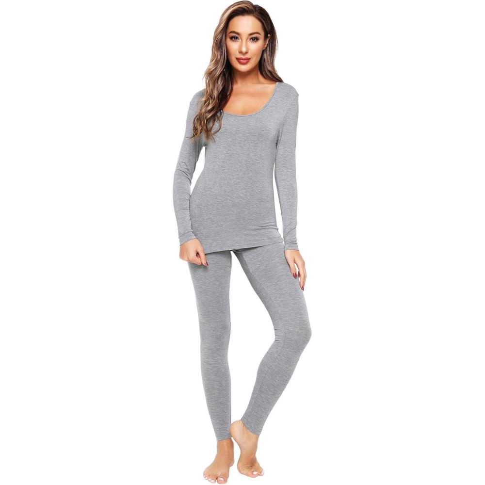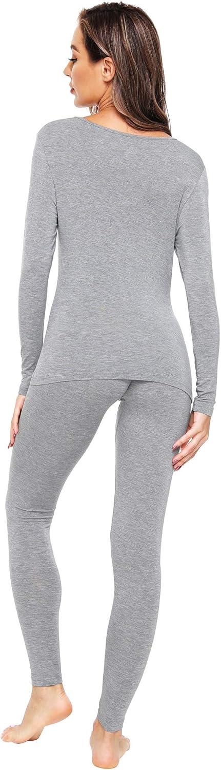 imageWiWi Soft Underwear for Women Thermal Long Johns Sets Super Warm Base Layer Top Pants Pajamas Set Viscose from Bamboo S3XAheather Grey
