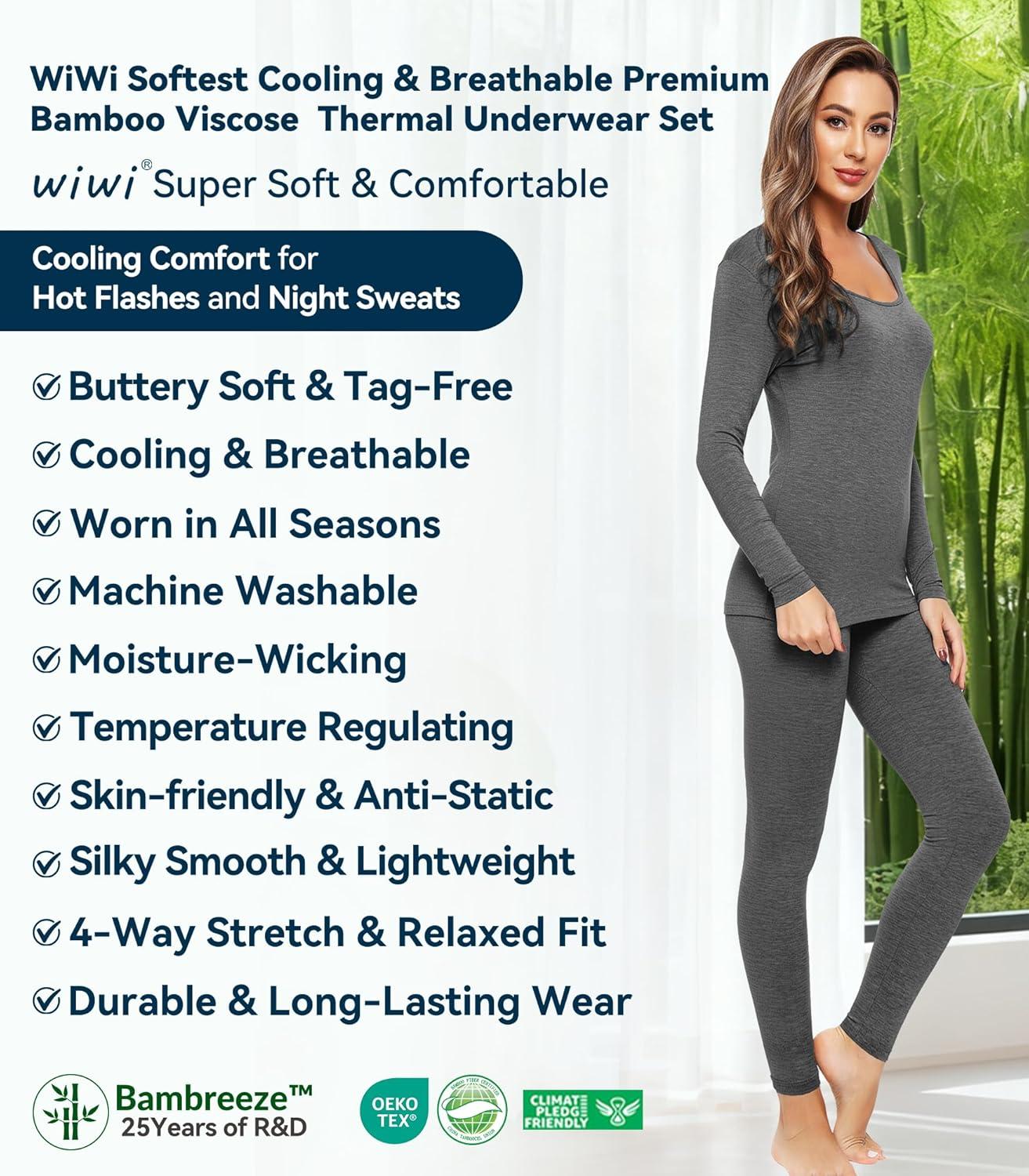 Our long thermal underwear (no wool) are lightweight and fit snug against the skin, perfectly fit your body curves. You can wear them on their own or under jeans and t-shirt without making you look fat. They won't bunch up, no riding up or no pilling, well-fitting & warm,95% Viscose made from Bamboo, 5% Spandex.
