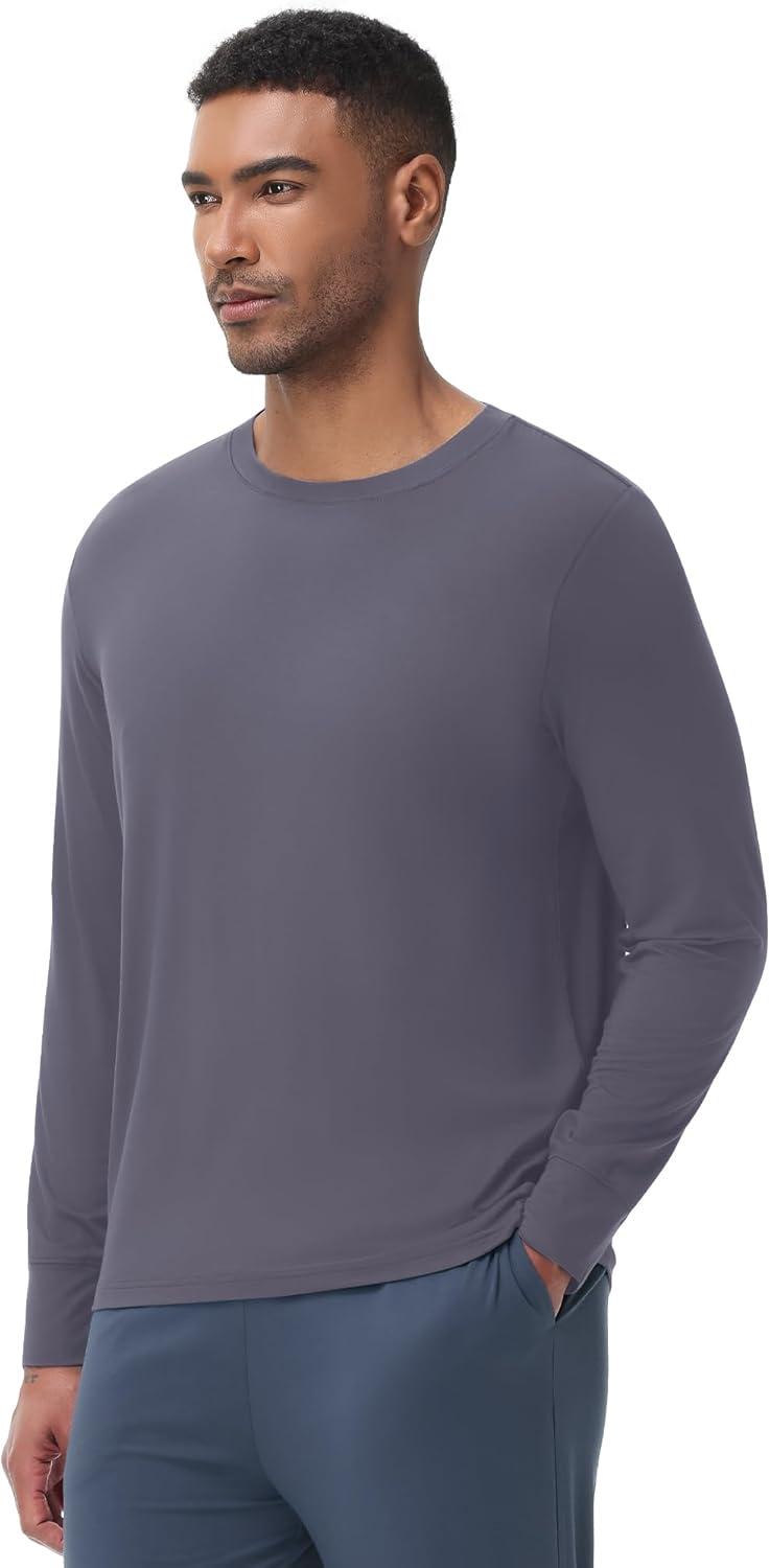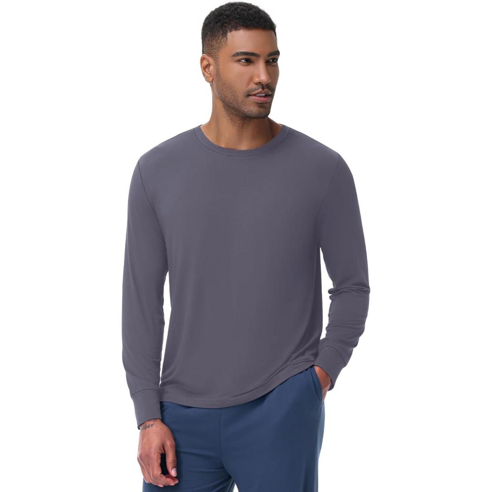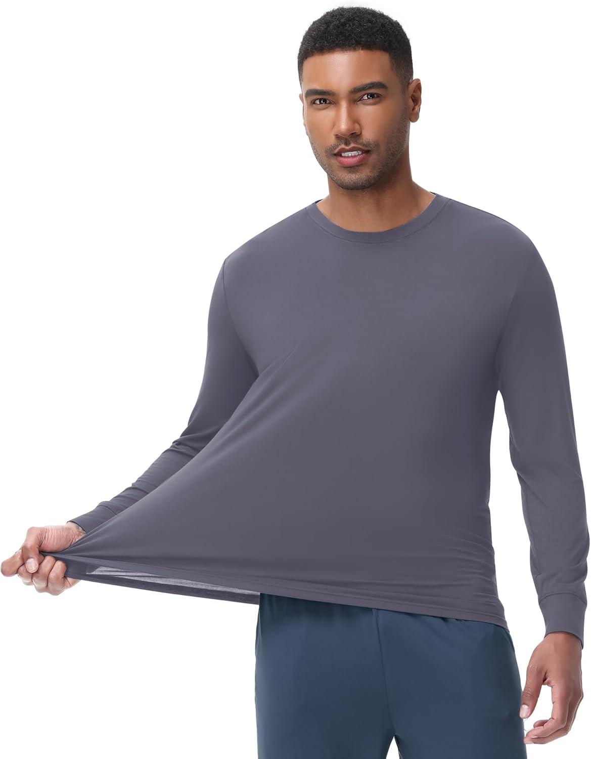 WiWi Viscose from Bamboo Men's Long Sleeve Tees Sun Protection Athletic Crew Neck Shirts for Pajamas S-XXL(B-dark Grey)