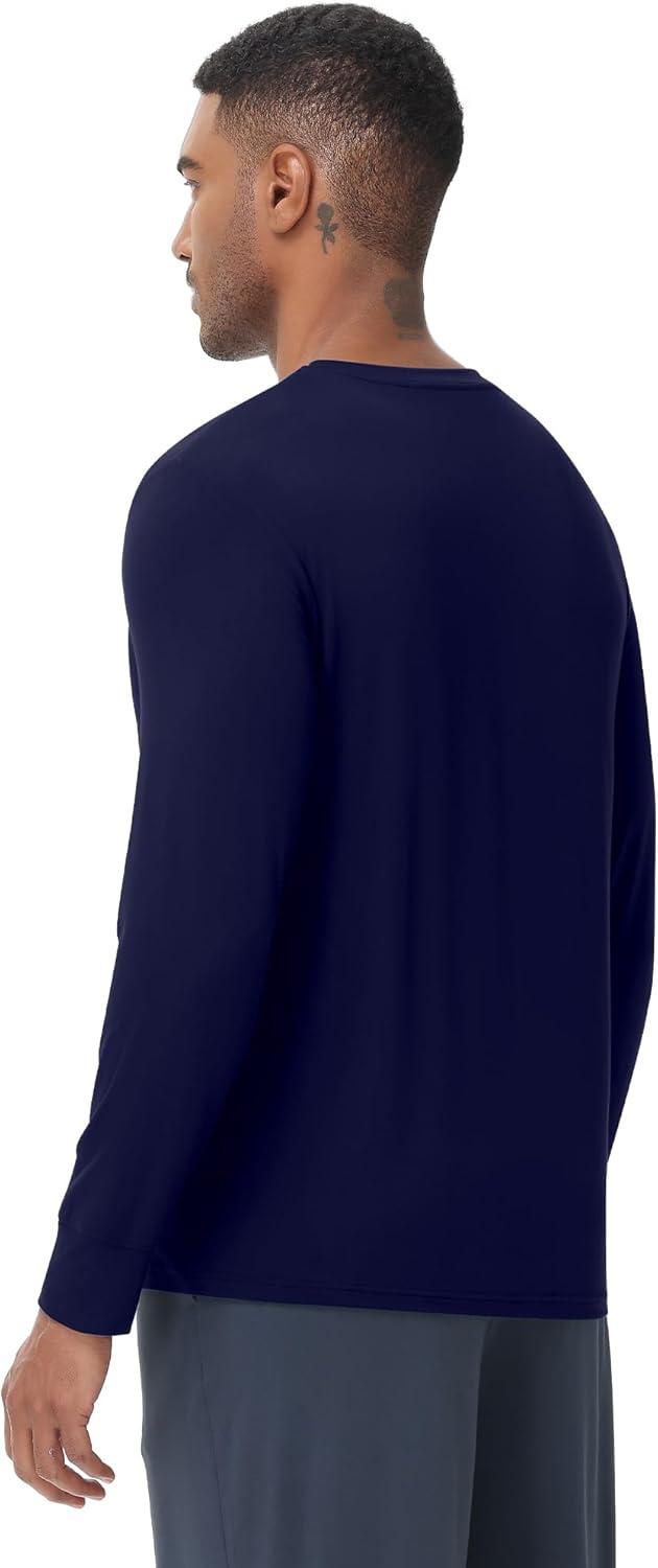 WiWi Viscose from Bamboo Men’s Long Sleeve Tees Sun Protection Athletic Crew Neck Shirts for Pajamas S-XXL(B-navy)