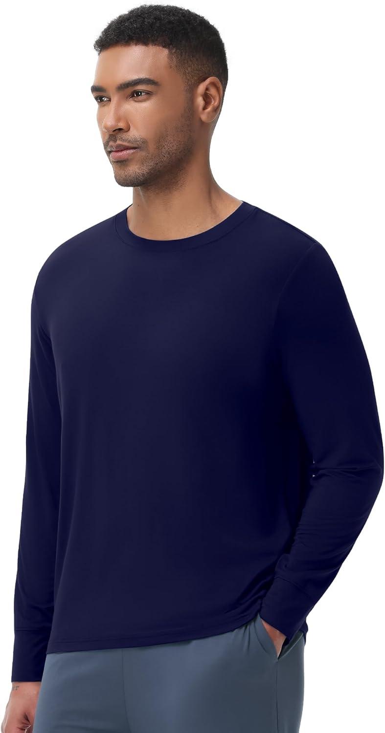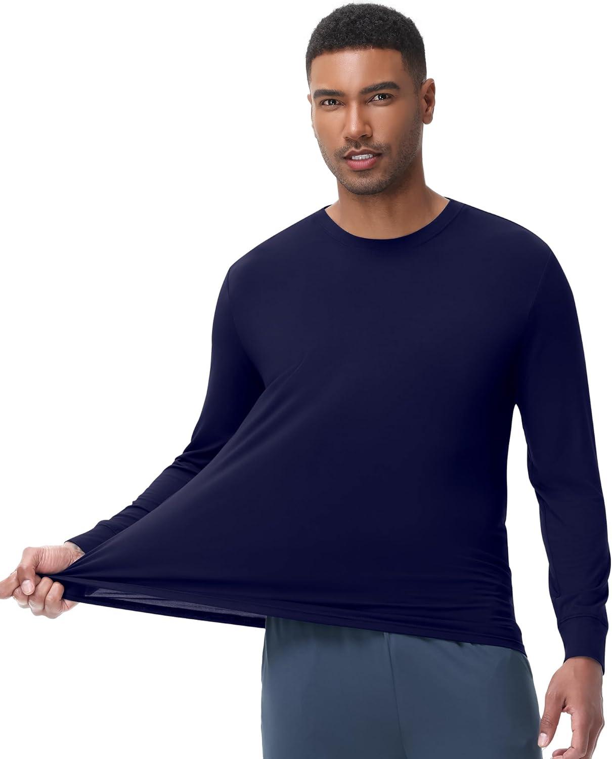 WiWi Viscose from Bamboo Men's Long Sleeve Tees Sun Protection Athletic Crew Neck Shirts for Pajamas S-XXL(B-navy)