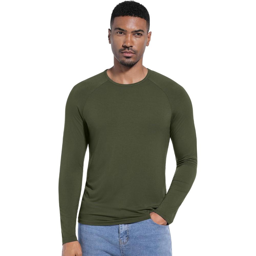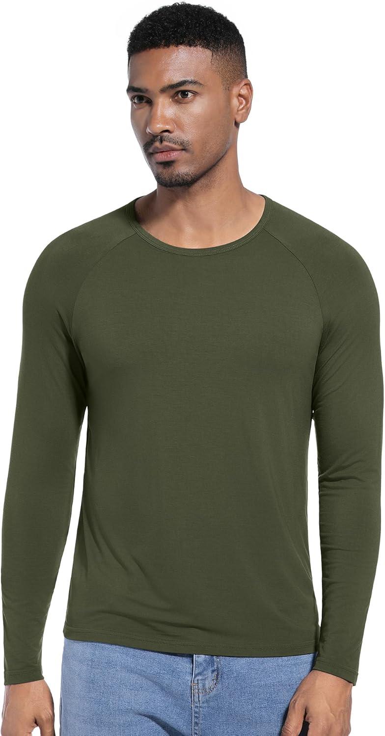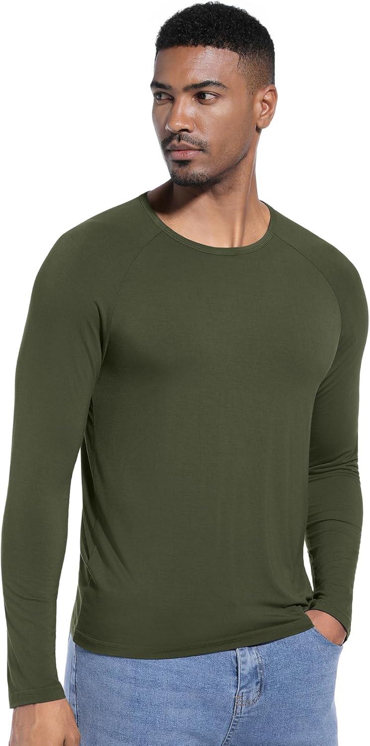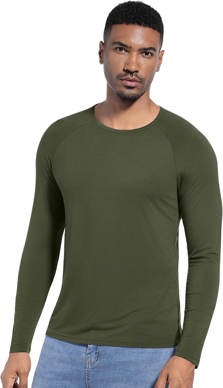 WiWi Viscose from Bamboo Men's Long Sleeve Tees Sun Protection Athletic Crew Neck Shirts for Pajamas S-XXL(C-dark Fence Green)