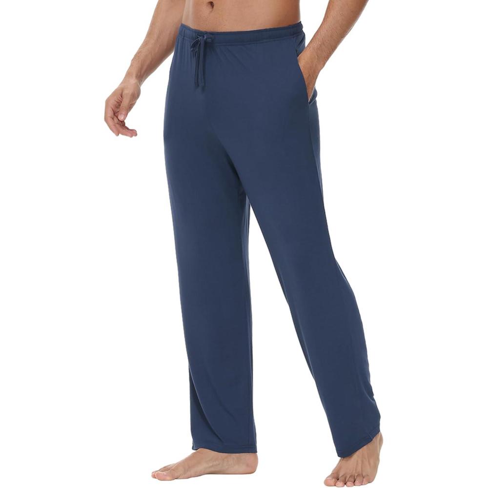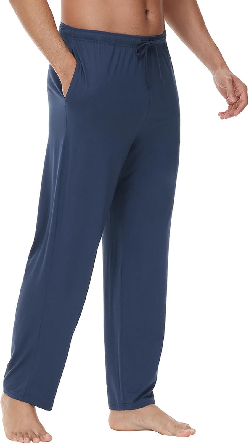 WiWi Viscose from Bamboo Men's Sleep Pant Sports Trousers with Pockets Light Bottom S-XXL(A-dark Blue)