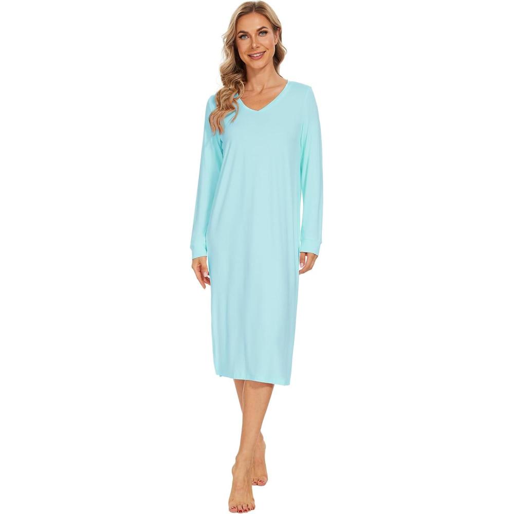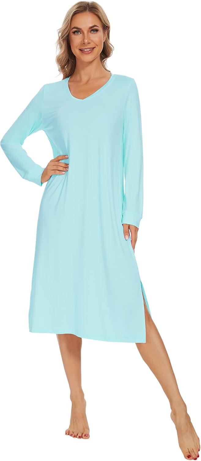 Get the WiWi Viscose from Bamboo Nightgowns for Women Long Sleeve Nightgown Soft Pajamas Warm Pj Dress S-XXL(A-aqua) you want at a price you can afford with our markdown sale.