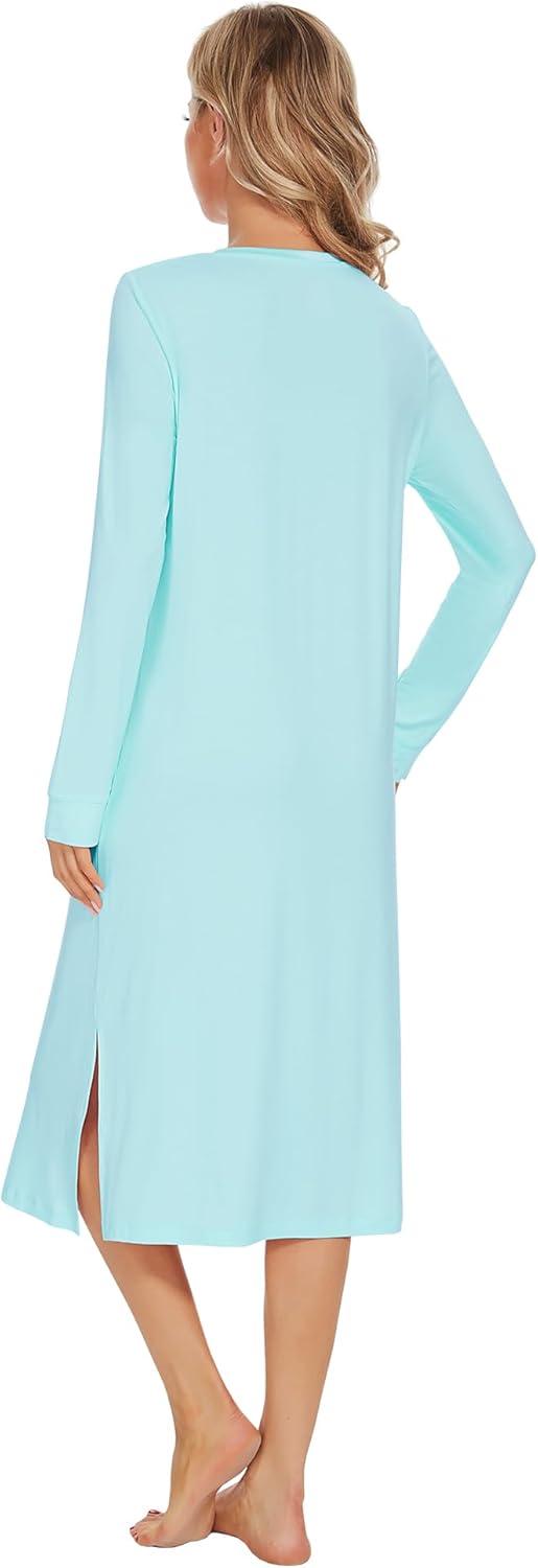 WiWi Viscose from Bamboo Nightgowns for Women Long Sleeve Nightgown Soft Pajamas Warm Pj Dress S-XXL(A-aqua)