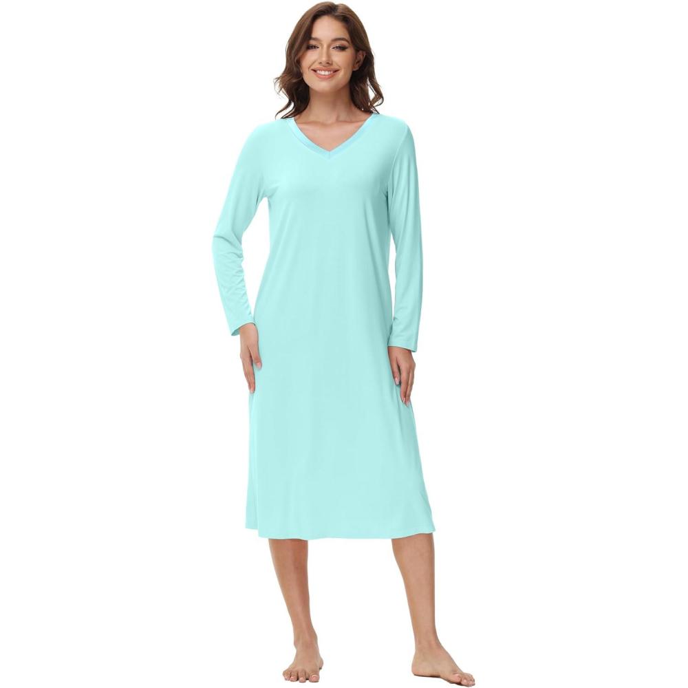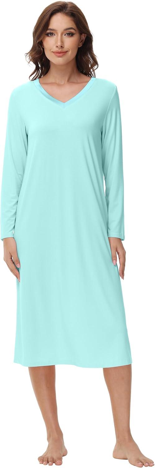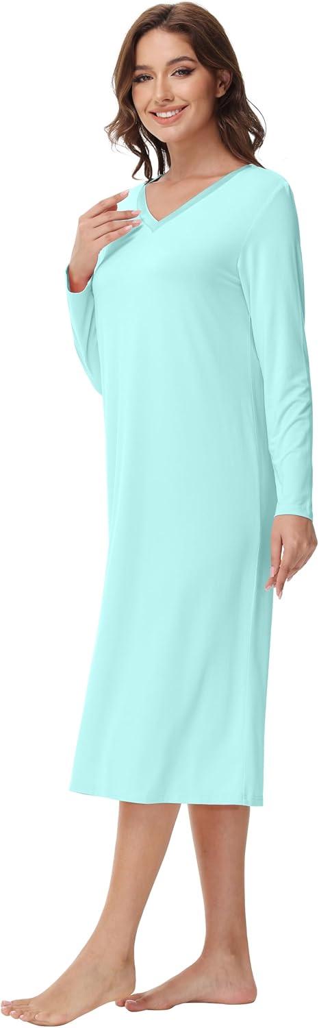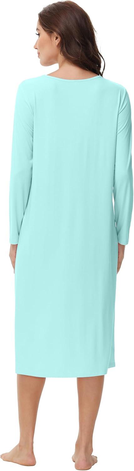 WiWi Viscose from Bamboo Nightgowns for Women Long Sleeve Nightgown Soft Pajamas Warm Pj Dress S-XXL(B-aqua)