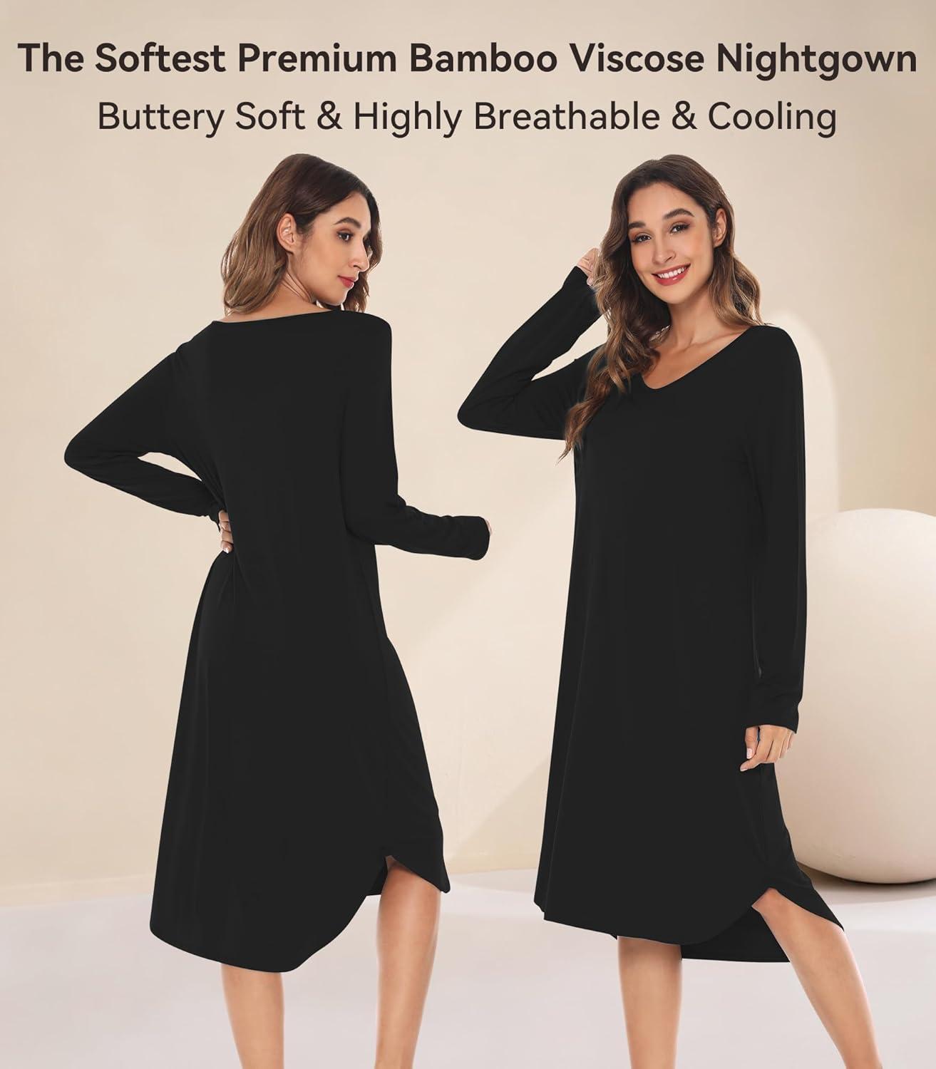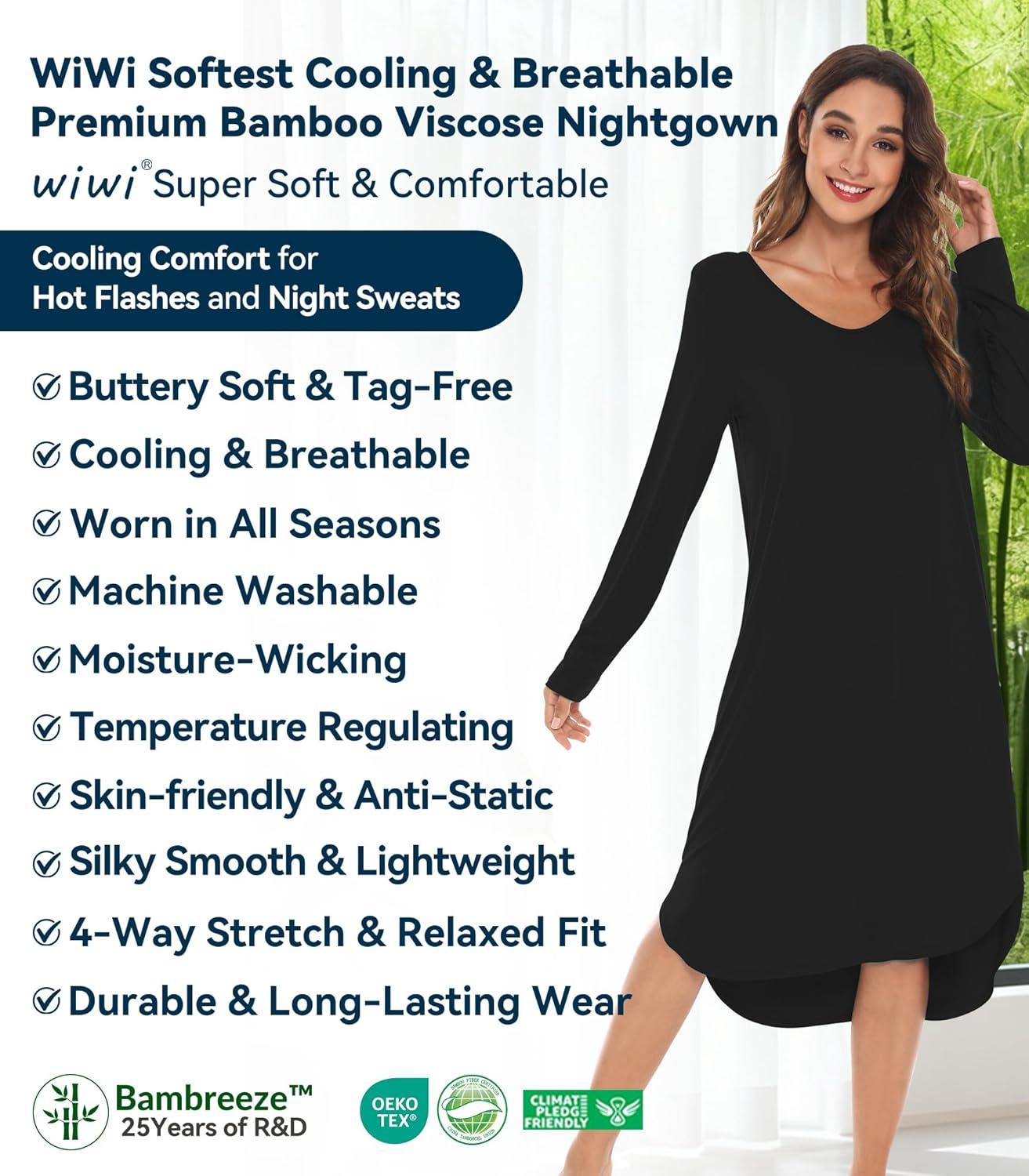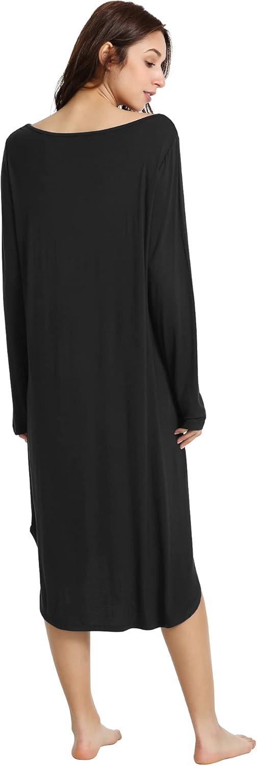 WiWi Viscose from Bamboo Nightgowns for Women Soft Long Sleeve Sleep Shirt S-4X(A-black)