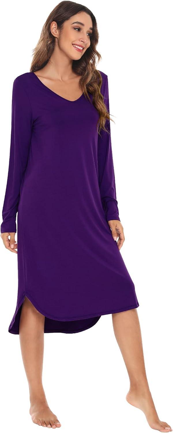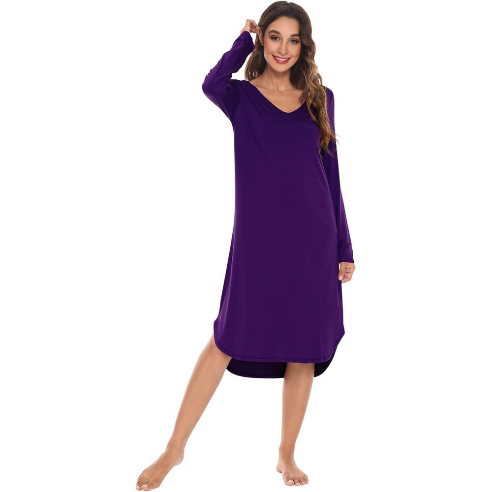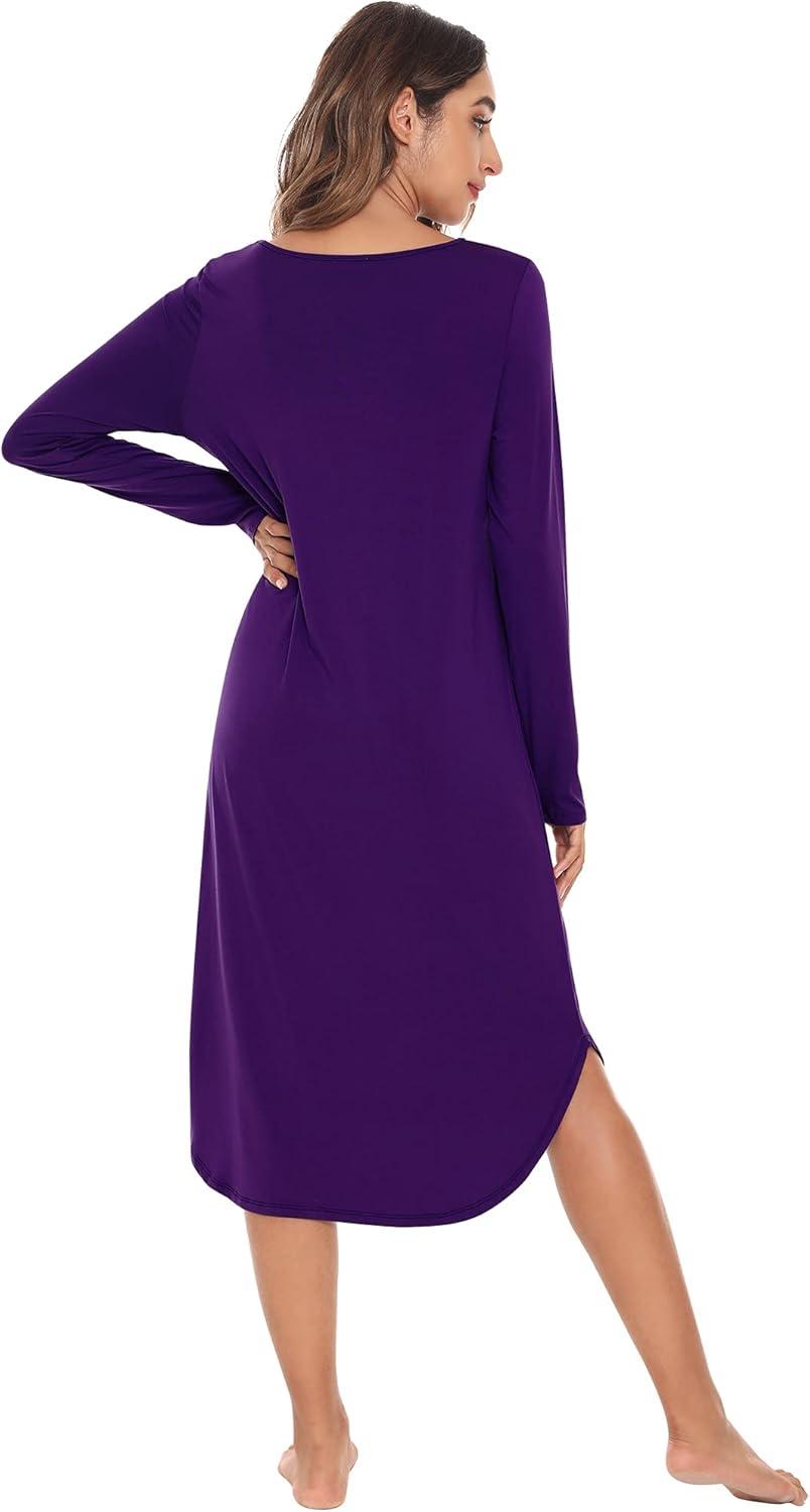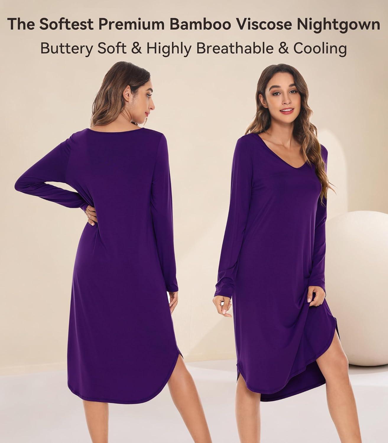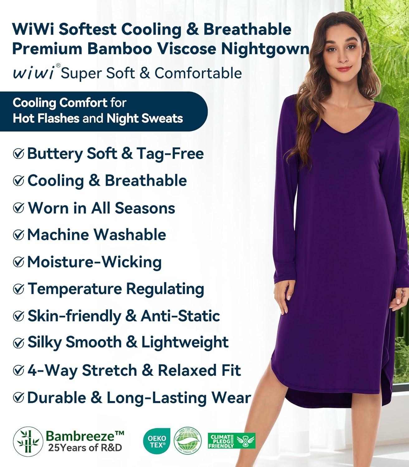 WiWi Viscose from Bamboo Nightgowns for Women Soft Long Sleeve Sleep Shirt S-4X(A-dark Purple)