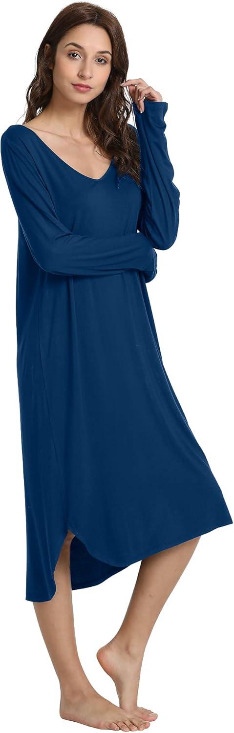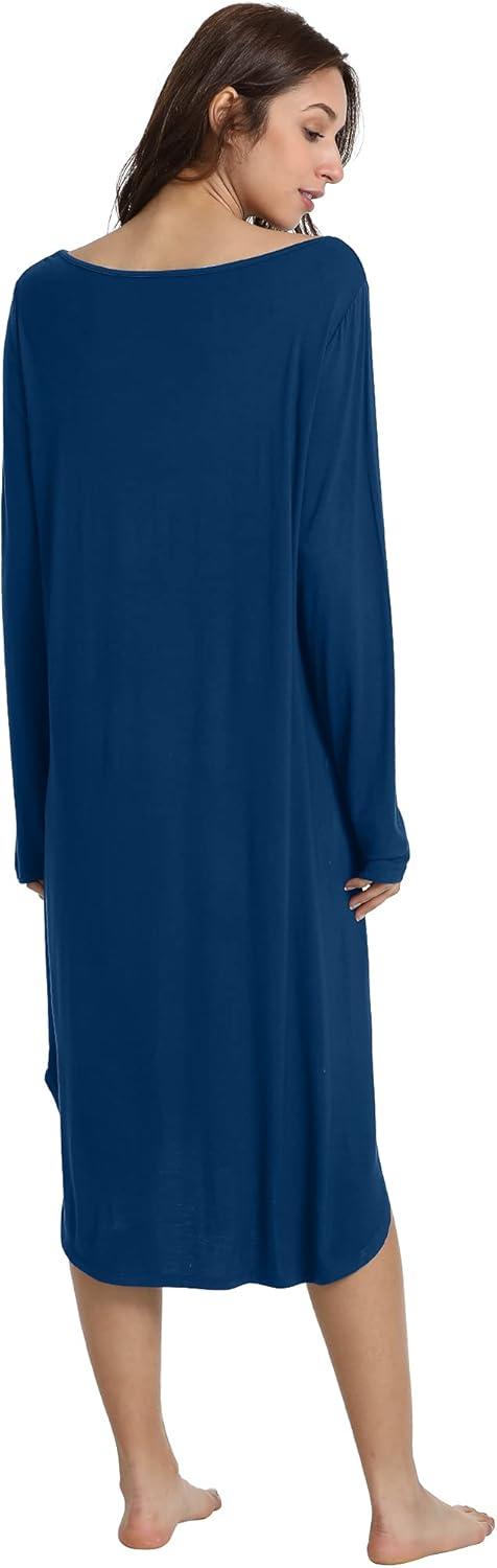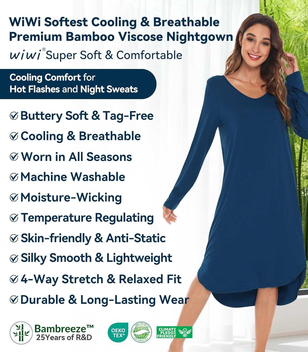 WiWi Viscose from Bamboo Nightgowns for Women Soft Long Sleeve Sleep Shirt S-4X(A-ink Blue)