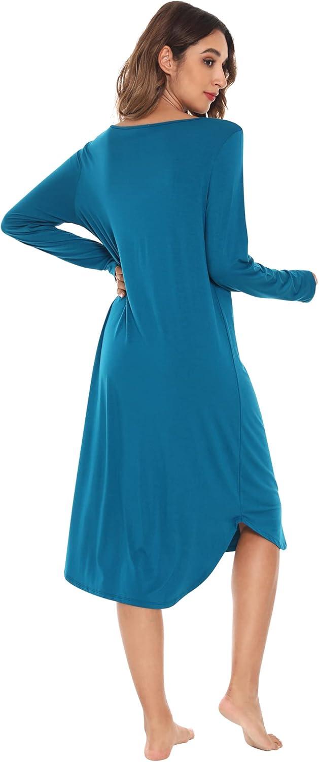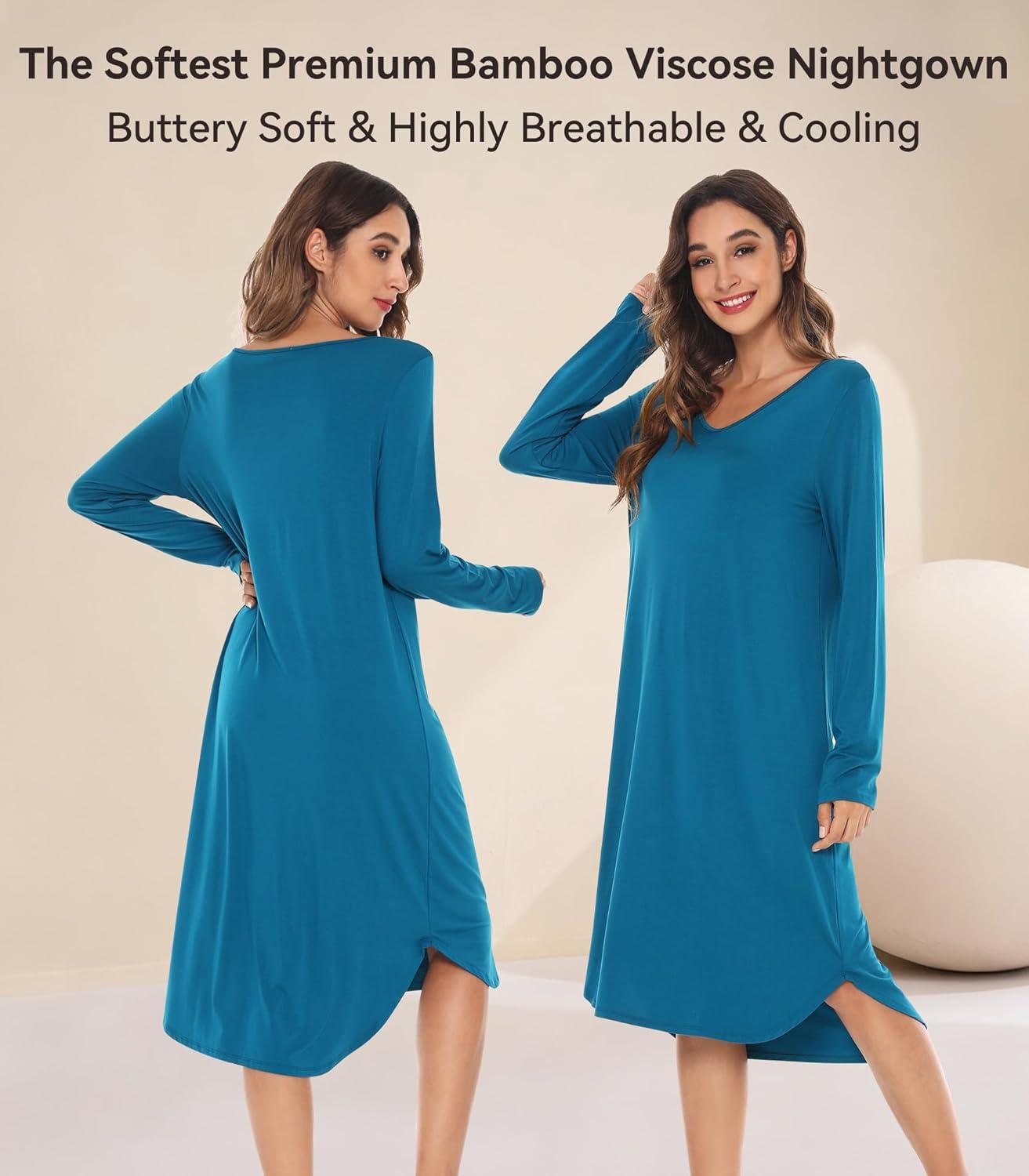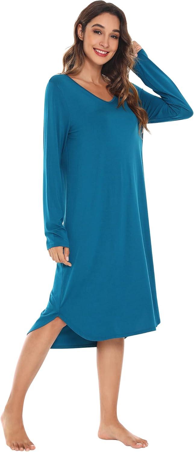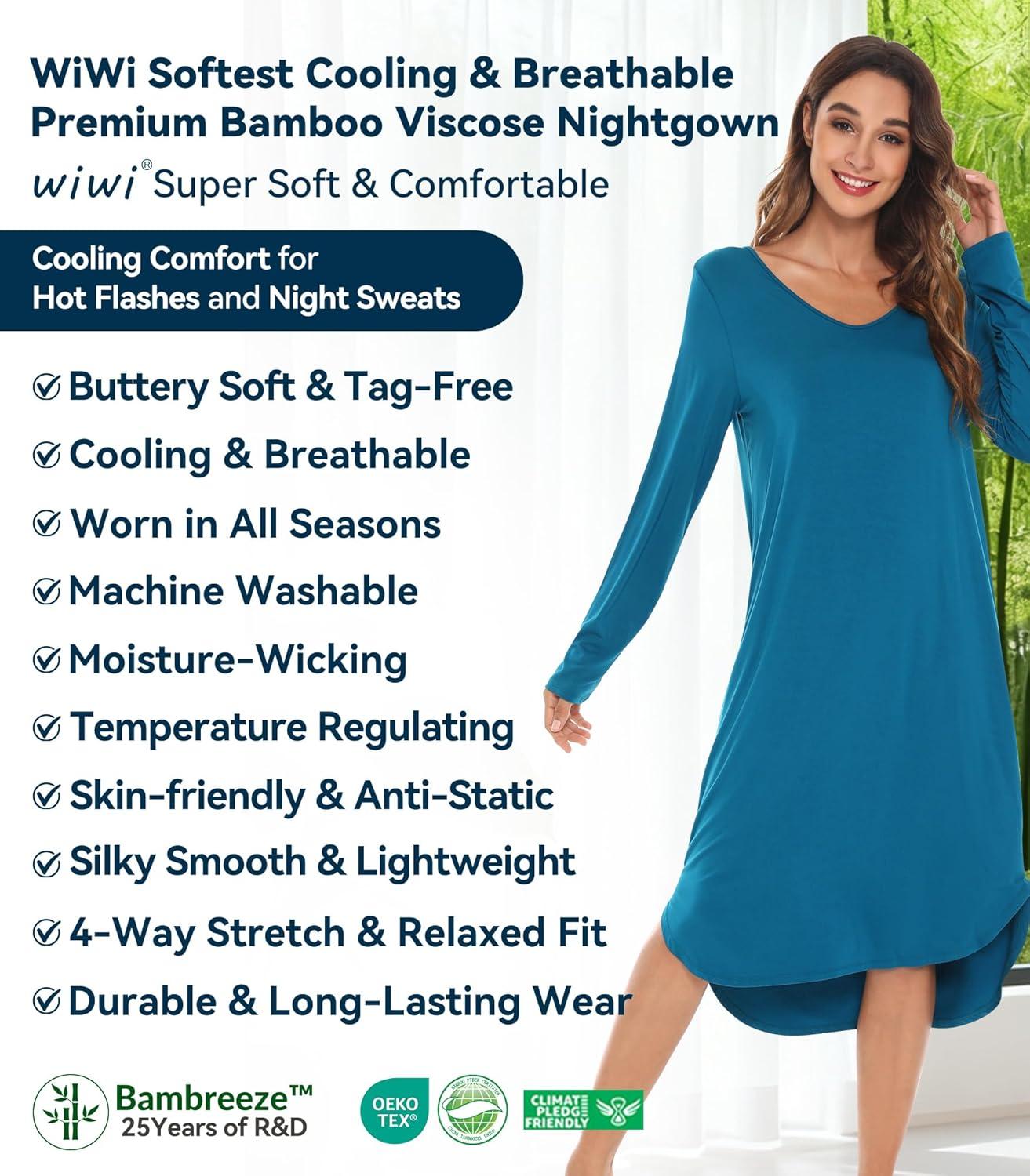 WiWi Viscose from Bamboo Nightgowns for Women Soft Long Sleeve Sleep Shirt S-4X(A-teal Blue)